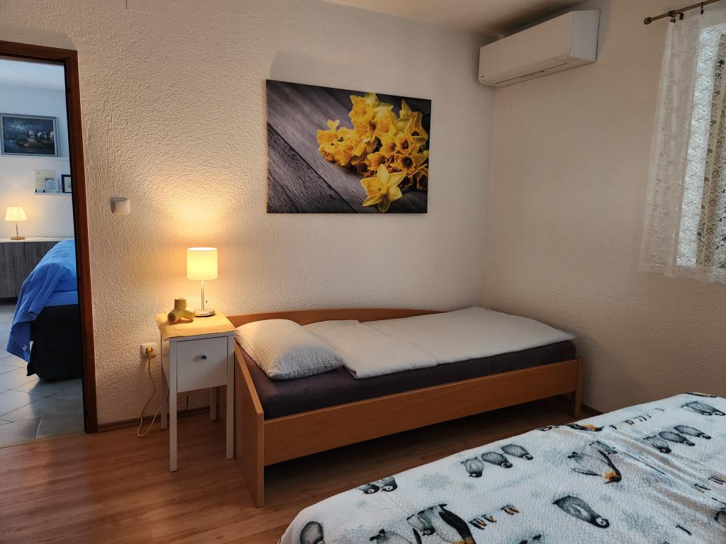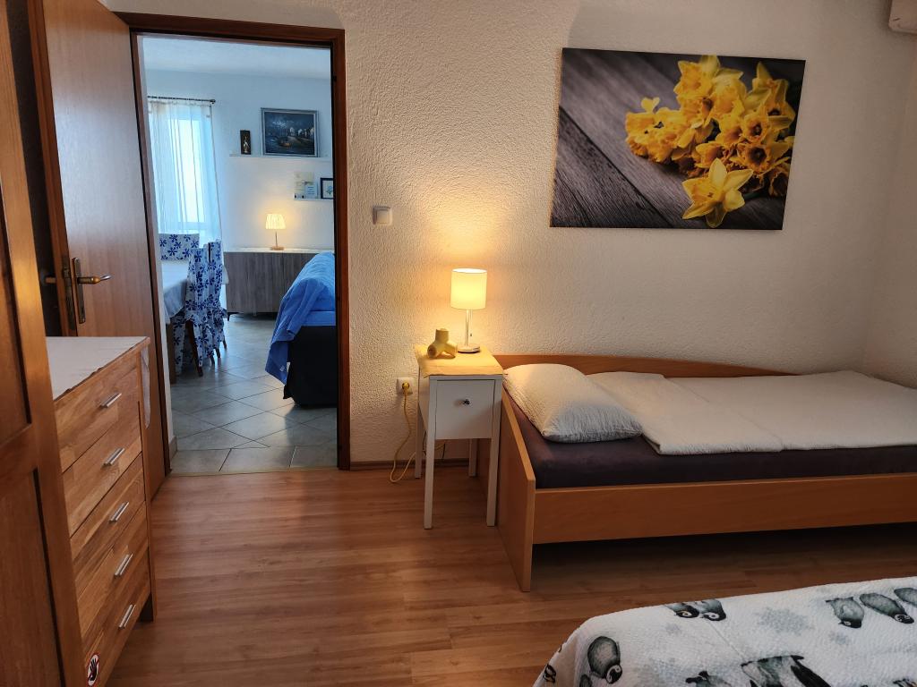 Naše dva apartmány jsou určeny pro skupiny, rodiny, přátele atd., kteří se dobře znají. V malém městě není žádná masová turistika. Krásný výhled na moře z terasy vás zve k relaxaci, odpočinku a načerpání nových sil. Majitelé bydlí v podkroví domu. Parkování najdete na ulici v jejich vlastním pozemku. Lze zde zaparkovat až tři auta. Na pláž se dostanete pěšky asi za 10 minut. Místo má vše, co potřebujete pro každodenní život. Z Karlobagu se můžete vydat na krásné jednodenní výlety, jako jsou Plitvická jezera, ostrovy Rab a Pag, město Zadar, vodopády Krka, jeskyně Paklenica, turistika ve Velebitu a mnoho dalšího. V obci si můžete koupit vše pro vaše denní potřeby. Pekárna, supermarket, bankomat atd.