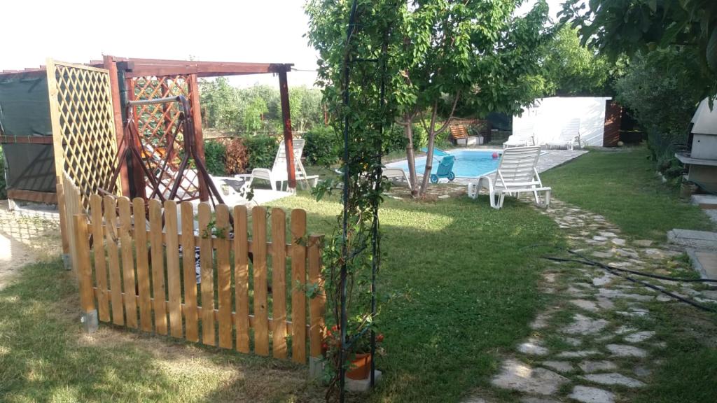 Více než 100 m2 obytné plochy, velký obývací pokoj, jídelna a kuchyně, 3 ložnice a dvě koupelny, k bytu patří také terasa 35 m2 a soukromý bazén na jižní části zahrady. V kuchyni je lednice, mrazák, trouba, elektrický sporák se 4 plotýnkami, příbory, varná konvice, mikrovlnka a pitná voda. Každý pokoj má také čisté povlečení, skříně, žehličku a žehlicí prkno, zrcadla. V obývacím pokoji je SAT TV, klimatizace a rychlé WiFi (internet). V koupelně je pračka, fén, ručníky, šampon atd. K dispozici je také otevřený krb, který je ideální pro grilování. K domu náleží také ovocný sad a dvě parkovací stání.
