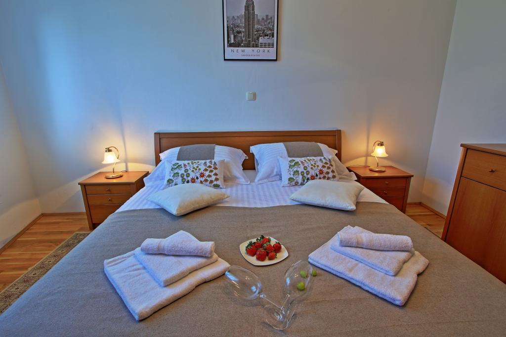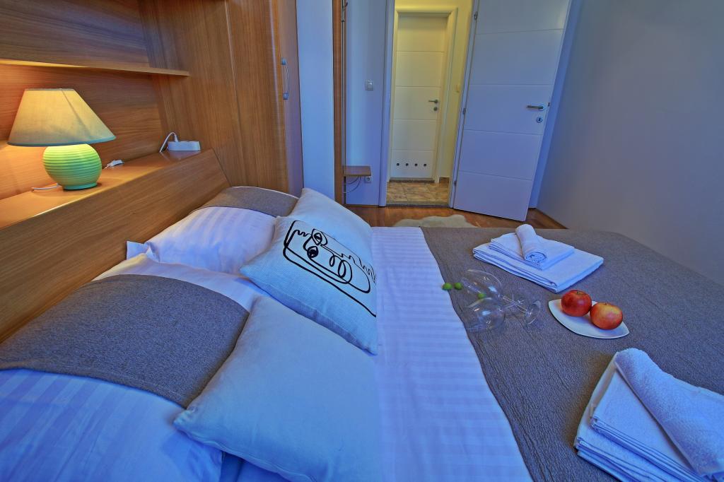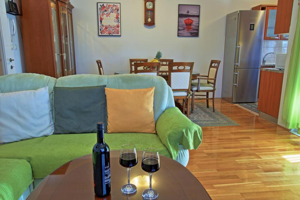 V apartmánu Jelena máte zdarma welcome drink a čerstvé ovoce. Cena zahrnuje pobytovou taxu, parkovací stání, klimatizaci, ložní prádlo, ručníky, toaletní papír, papírové ručníky, čistící prostředky, tablety do pračky, tablety do myčky atd...