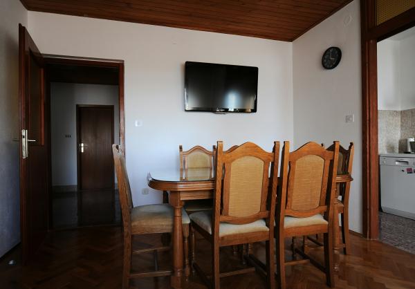 Byt má tři ložnice se sedmi lůžky, obývací pokoj s rozkládací pohovkou, kuchyně, koupelna, WC. Je umístěn v přízemí a můžete využít zahradu s dřevěným stolem a lavicemi a grilem. To je klimatizovaný a má vše potřebné pro pohodlný pobyt (pračka, lednice, mrazák, mikrovlnná trouba, WIFI, ..) Ze Splitu a Trogir se nachází přibližně deset kilometrů.