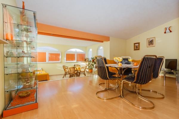Apartmán Lucia má dva pokoje s vlastním sociálním zařízením. Jeden pokoj má přístup na otevřené terase. Obývací pokoj a kuchyň jsou prostorné a je spojen s uzavřeným terasou, tento pokoj je také klimatizovaný. Pokud je to nutné, v obývacím pokoji může spát 2-4 osob. Kromě toho máme možnost jedné přistýlky a dětské postýlky pro dítě. Hosté mají k dispozici venkovní nádvoří a grilem. Budova má parkovací místo. Výhodou blízkosti bytu je na: moře (80 m), obchody, na letištích, autobusových nádražích, kliniky, dětských hřišť, restaurací a kaváren. Byt se nachází v klidné lokalitě bez hluku a silnic. Pro vyznavače turistiky, tam je blízkost Kozjak, a pro milovníky rostlin biblického Garden Stomorija. Ona je krásná a jízda na kole podél pobřeží zálivu, to vše Castle Stafilic, až Kastel Gomilice, kde je přístav pro jachty. Město zámku se nachází ve výhodné poloze v blízkosti městy Split a Trogir a okolní ostrovy.