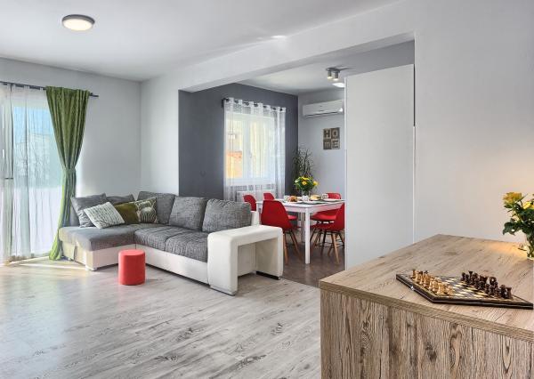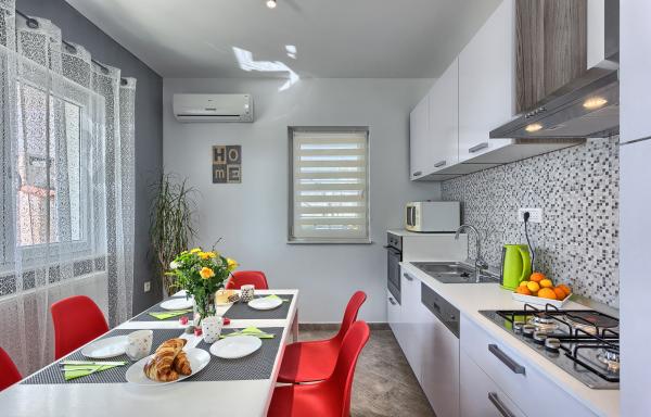 Vážení hosté, náš nově zrekonstruovaný apartmán se nachází v přízemí rodinného domu v klidné části Kaštel Novi, 700 m od moře a pláže, v blízkosti bohatých kulturních památek UNESCO města Trogir (8 km, 10 min), Split (16 km, 20min) a Solina (10km, 15min). Pláže v Kaštelu Novi jsou oblázkové a písčité, vhodné pro děti i dospělé a délky 3 km. Naše místo je známé svými dlouhými promenádami podél pobřeží, které oplývají parky, restauracemi, středověkými pevnostmi, stejně jako párty v kulturním a zábavním letovisku Kaštelanski. Letiště je od nás 4 km, z našeho místa je velmi snadné uspořádat výlety do vnitrozemí (národní parky Dalmácie Zagora) nebo na ostrovy (Čiovo, Brač, Hvar, Vis). Vítejte, přejeme Vám příjemný pobyt