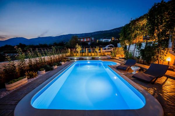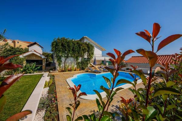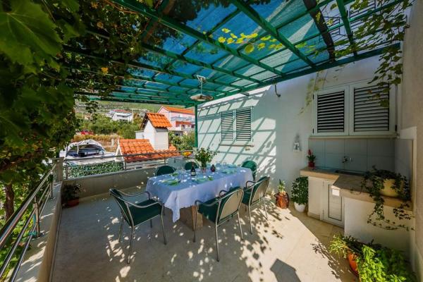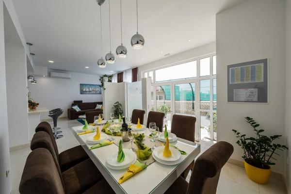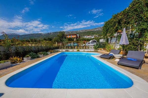 Luxusně zařízený byt s vyhřívaným bazénem, terasou, venkovním krbem a krytým parkováním. , Nachází se v klidné části Kaštela, s přímým přístupem ze silnice. 1, 2 km od centra města a 1, 3 km od moře. Hostitelé žijí v bytě nad bytem, vždy k dispozici, ale diskrétní a nenápadní. Nový byt, pronajatý poprvé od května 2019.