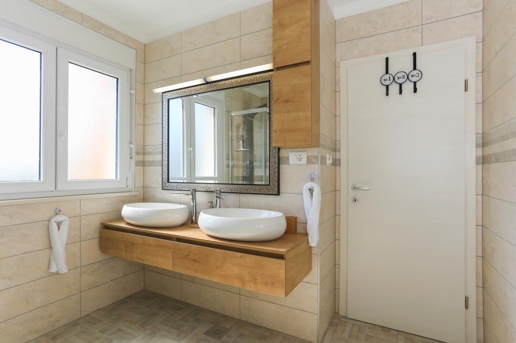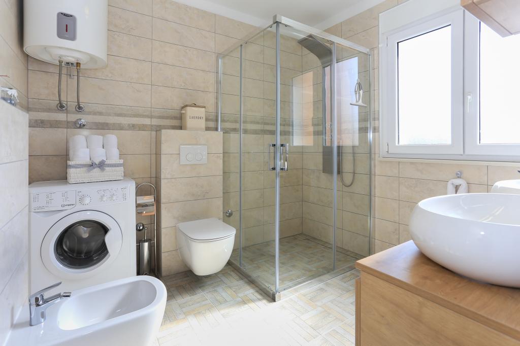 Tento zbrusu nový byt se nachází v centru města Kastel Gomilica a je plně vybaven pro váš pohodlný pobyt. Jen pár minut odtud je Marina Kaštela, autobusová zastávka (100 metrů) s přímou linkou do Splitu, na letiště a také do Trogiru. Také ve vzdálenosti pouhých 400 metrů je vlakové nádraží s linkou, která vás zavede přímo do centra Splitu (Městský přístav a autobusové nádraží), což je skvělé pro návštěvu okolních ostrovů. Pár minut chůze od bytu je oblázková pláž s bary a další zařízení (trampolína, houpačky atd.). Náš host má soukromý vchod na vlastním parkovišti, takže máte úplné soukromí a bezpečnost. Byt sestává z velkého obývacího pokoje propojeného s kuchyní a jídelnou (35 m2). Má 3 ložnice (dvě s manželskou postelí - 1, 6x2, 0m), zatímco jeden pokoj má velkou manželskou postel (1, 8x2, 0m) a jedno samostatné lůžko (0, 9x2, 0m). V bytě jsou také 2 kompletní toalety se sprchou. Byt je ve druhém patře.