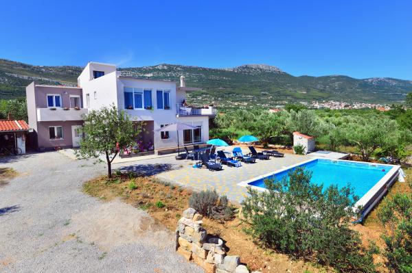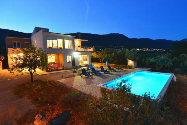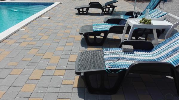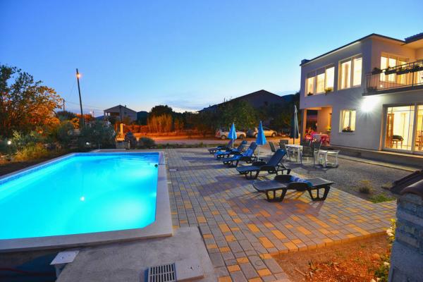 V bytě je vlastně přízemí 120m2 v nově zrekonstruované vile s bazénem 45m2. Skládá se ze 3 ložnic, 3 koupelnu. Všechny pokoje jsou klimatizovány Objednaný jako celek vily pro větší počet osob, protože první patro má 2 další pokoje pro 4 osoby, cena dohodou. Objekt je situován 5 minut od letiště a ve středu mezi Split a Trogir. Je umístěn v klidné části obce, téměř neobydlené, a máte pocit, že jste v přírodě, obklopen zelení a klidem. S výhledem na moře a panoramatický výhled na záliv. Parkování zdarma, plochou TV, Wi-fi, a všichni používají celý dvorek s bazénem!
