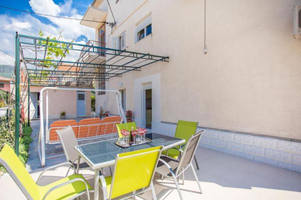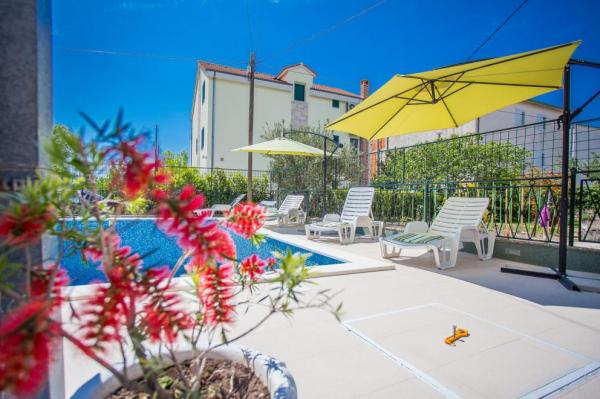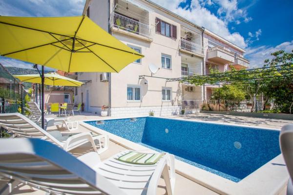 Teplý doporučení, zejména pokud máte malé dítě nebo děti. Dvůr je krásně krajinářský, bazén dokonale čisté, apartmány jsou vybaveny vším, co potřebujete, aby zůstali, přivítala nás všechny elegantní a čisté. Hostitelé jsou teplé, přátelský a vždy ochotný pomoci. Bydleli jsme v bytě s výhledem na moře, ideální místo pro ranní kávu. Moře je čisté a pláže jsou čisté. Prostředí podél pláže je velmi pěkně zdobené. Nedaleko jsme našli několik dobrých restaurací (baletní školy, rekreačních) s velmi dobrými cenami potravin a normální, v blízkosti obchodů, a dokonce i Split a Trogir není daleko. Tato rodina je ukázkovým příkladem toho, jak se zapojit do cestovního ruchu. Jakákoli chvála !!! :)