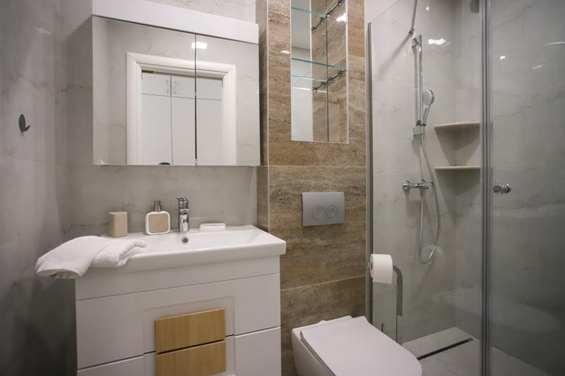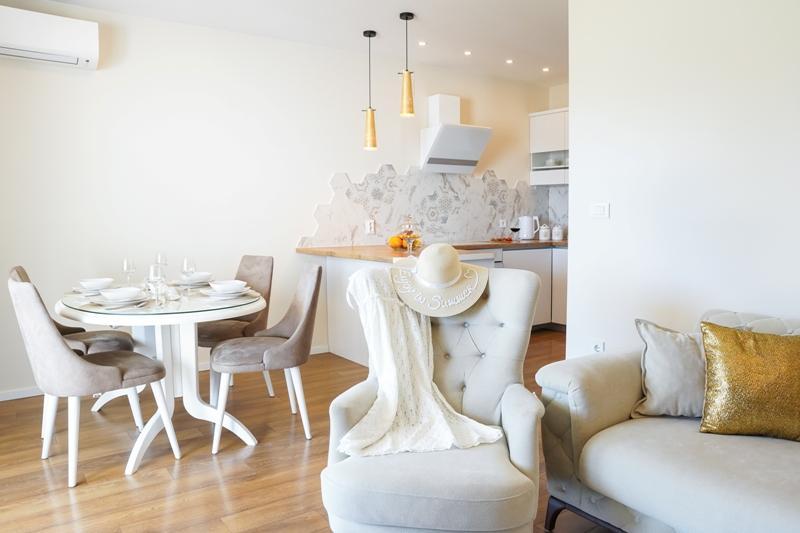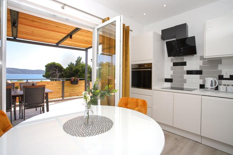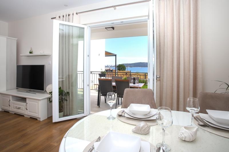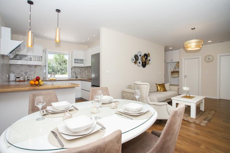 Byt je dostatečně prostorný až pro 4 dospělé a má 2 plně vybavené koupelny. Interiérový design je vybrán velmi vkusně, s minimalistickou barevnou směsí a příjemnými dekoracemi. Spotřebiče a zařízení bytu jsou špičkové a je na nich vidět hodně času a péče byly začleněny do jeho koncepce. Čisté, dobře osvětlené, v klidné oblasti, s úžasnou terasou, kde si můžete dopřát ranní kávu a přitom cítit mořský vánek. Hostitelka bydlí nahoře a často nás překvapila výborným jídlem a dárky. Opravdu je to úžasný člověk, který nám nabízí spoustu rad ohledně místních restaurací a atrakcí a vždy nás vítá se širokým úsměvem a je připraven s námi mluvit o našem dni. Není si na co stěžovat, opravdu to vypadalo jako druhý domov a pokud a až znovu navštívíme Chorvatsko, toto je místo, kam se budeme vracet.