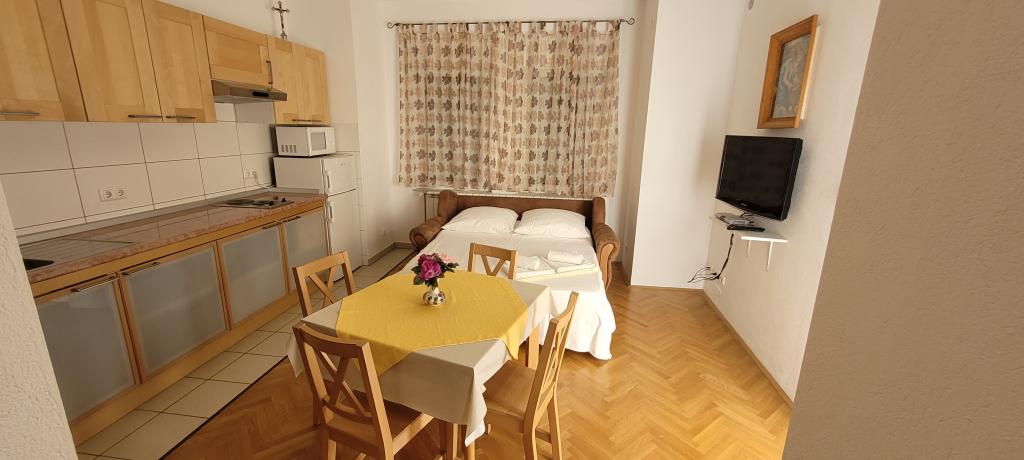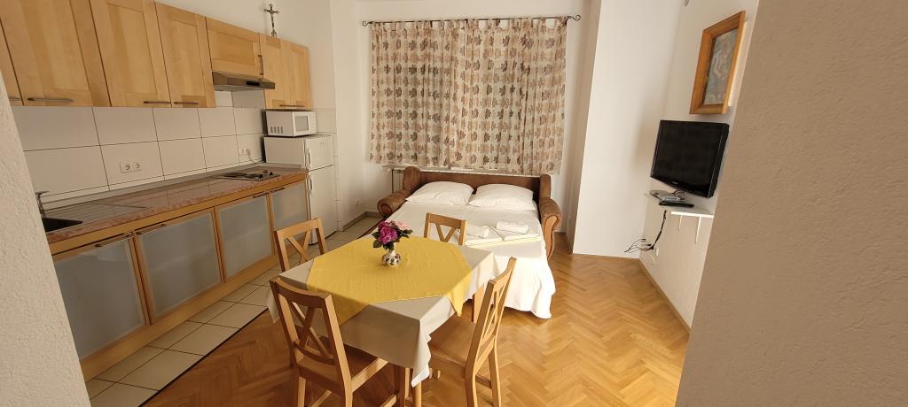 Plně vybavené apartmány v klidné části Kaštely, vzdálené 100 m od moře. Zařízení se nachází 5 minut chůze do centra.Každý apartmán má jednu ložnici, koupelnu a obývací pokoj a jsou kategorizovány třemi hvězdičkami, což vám umožní pohodlnou a útulnou dovolenou. Apartmány jsou plně vybaveny TV/sat, klimatizací, kuchyní, parkováním a společným grilem umístěným ve dvoře. Okolní místa budou zajímavá pro milovníky přírody, protože poskytují klidné prostředí pro vaši kompletní dovolenou.