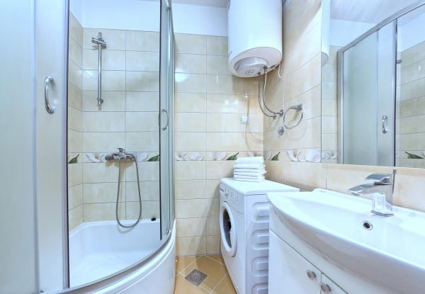 Krásný byt, ani ne minutu k moři. Vše, co potřebujete, je poblíž. Kavárny, obchody, pošta, lékárna. Majitel je velmi milý a vždy k dispozici pro jakékoli dotazy. Byt je velmi čistý a prostorný. Byt měl vše, co jste potřebovali. Pračka a prací prostředek, myčka a tablety. Když jsme dorazili, v lednici byla voda a džus, což bylo pro začátek velmi příjemné, takže jsme nemuseli hned do obchodu. V bytě byl také příjemný chládek. Hodnocení 10/10 a rozhodně doporučuji.