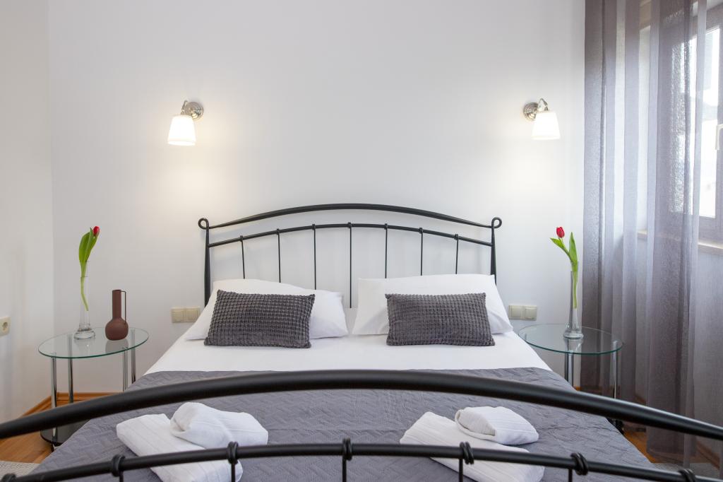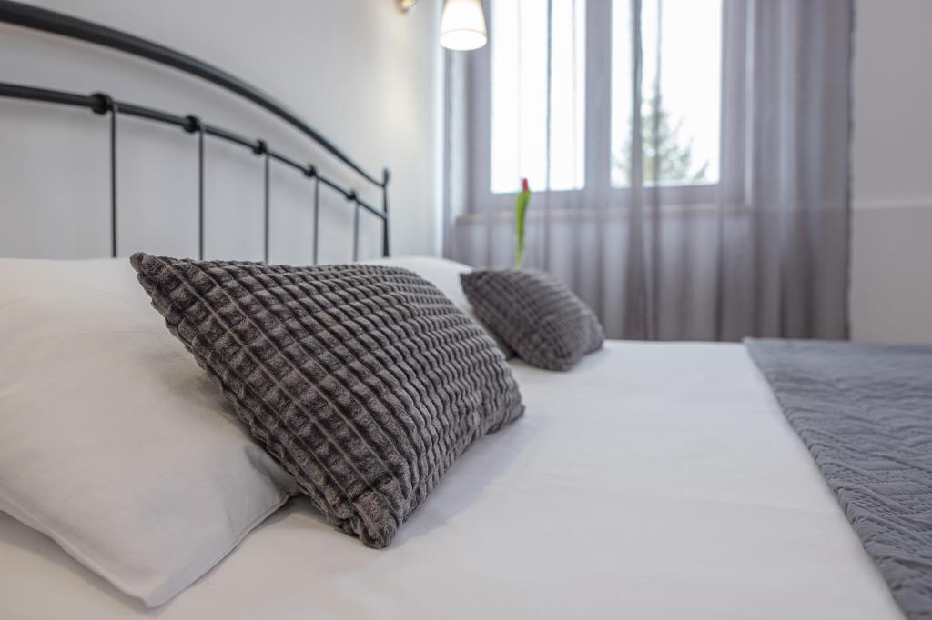 Apartmány IVO se nacházejí v rodinném domě na klidném místě Kastel Luksic, 200 m od moře. Dům je jen 5 minut chůze od centra, kde je pošta, kavárny, restaurace, obchody, kostel, kulturní památky, jako jsou středověké hrady . Budova má dva apartmány s kapacitou 4-8 osob se dvěma ložnicemi, koupelnou a kuchyní. Oba apartmány jsou klimatizované, s TV a balkonem s výhledem na moře. Před budovou je zajištěno parkování pro všechny hosty, a pokud je to žádoucí, použití grilování na velké terase pro socializaci. Apartmány jsou také ideálním ubytováním pro hosty přijíždějící autobusem nebo letadlem, kteří mohou využívat městskou komunikaci. Díky své poloze mezi dvěma korálky UNESCO, Trogirem a Splitem, je Kaštela ideálním místem pro všechny, kteří chtějí dovolenou, autentický zážitek z destinace a zábavu a rekreaci. Dům má dva samostatné byty. V nejbližším okolí nejsou žádné byty, což zaručuje pobyt daleko od větších skupin lidí.