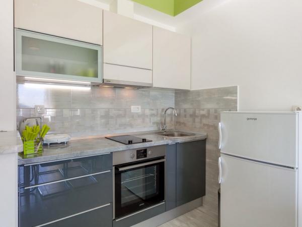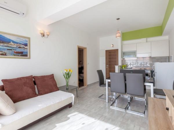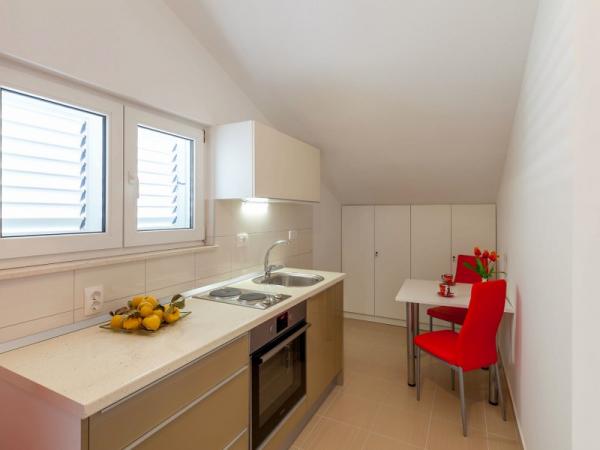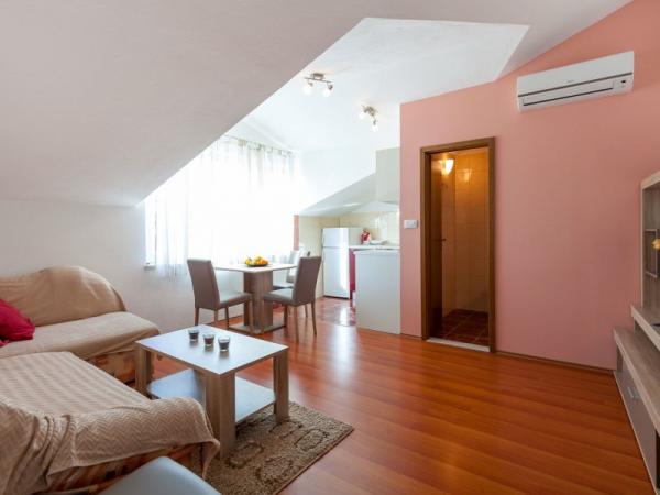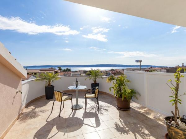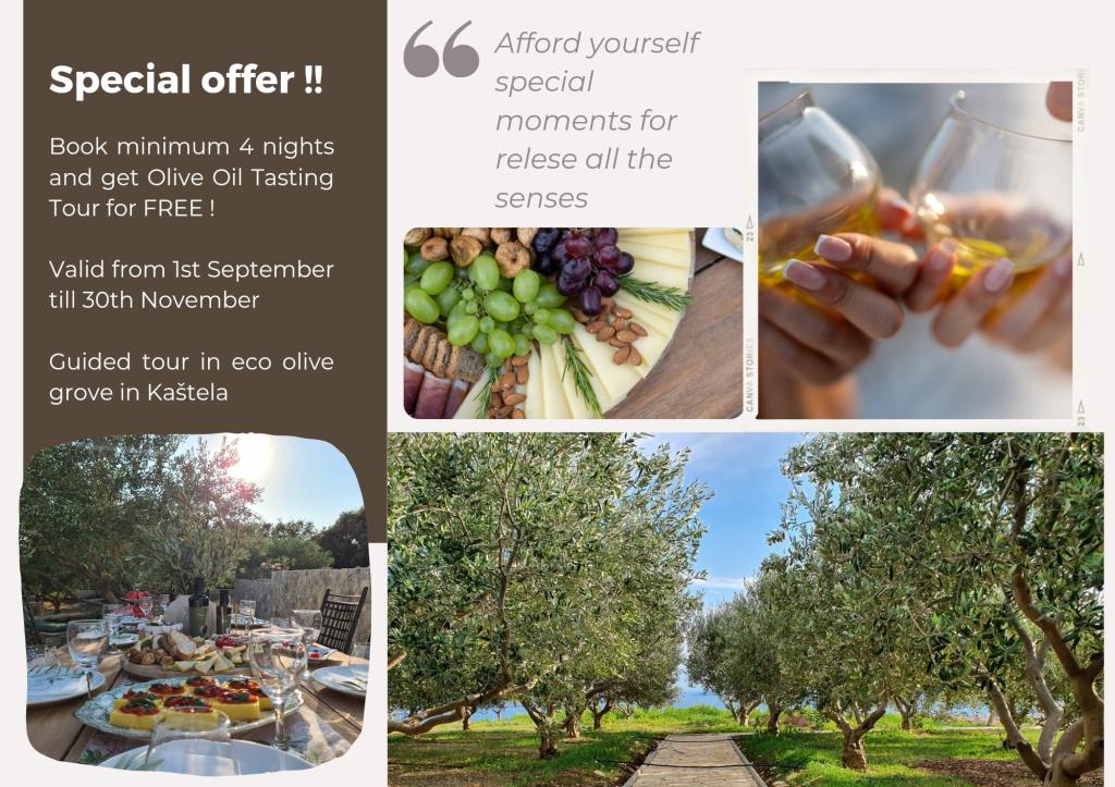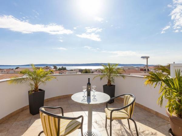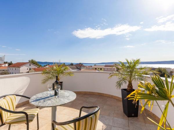 A nové a plně vybavené apartmány se nacházejí v samém srdci hradu. V přízemí se nachází velký supermarket s řeznictví a pekařství. Tyto apartmány se nacházejí pouhých 5 minut od pláže, bary, restaurace. Autobusová zastávka se nachází 50 m od objektu, a ambulance a lékárna. Kaštela se nachází mezi dvěma města UNESCO Split a Trogir, které se nachází asi 10 km.