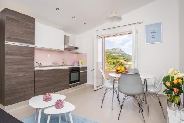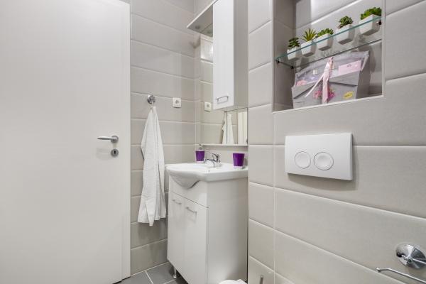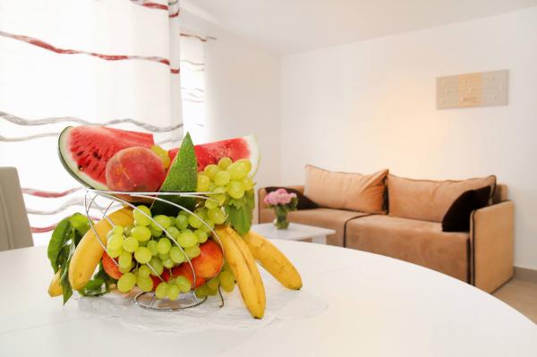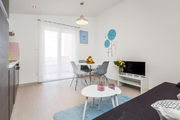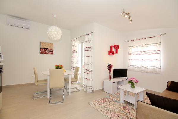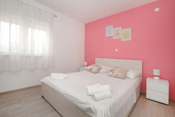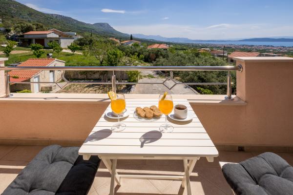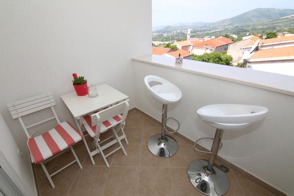 Zcela nový byt se nachází v Kastel Stari mezi dvěma UNESCO chráněného města Split a Trogir. Nachází se na horním patře domu (třetí) patro nabízí nádherný panoramatický výhled. Interiér je stylově zařízené a vybavené. Prostorný obývací pokoj se skládá z velkého pohovkou, kuchyňským koutem, TV s plochou obrazovkou nabízí nádherný panoramatický výhled s velkým balkonem. V koupelně je moderně vybaven vším, co budou potřebovat. V ložnici je prostorné s king size pohodlné lůžko. Exteriér domu je opravdu skvělý, nabízí zelenou zahradu plnou ovoce, zeleniny a květin.