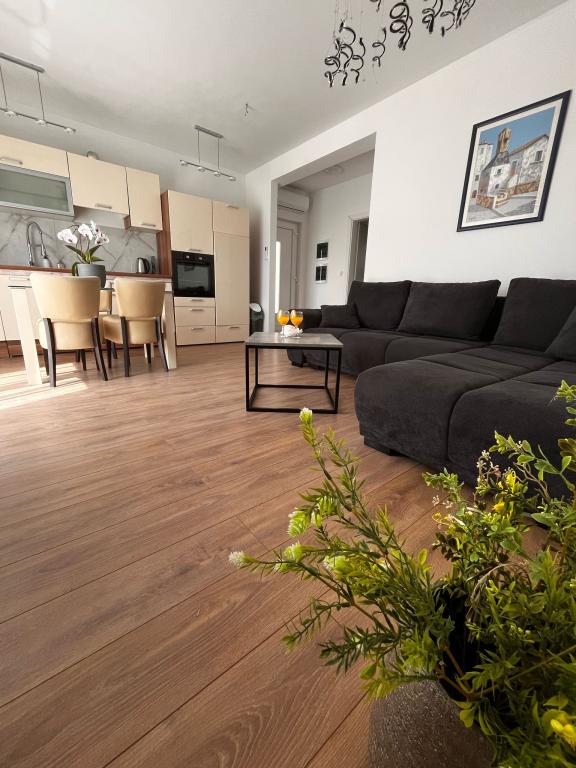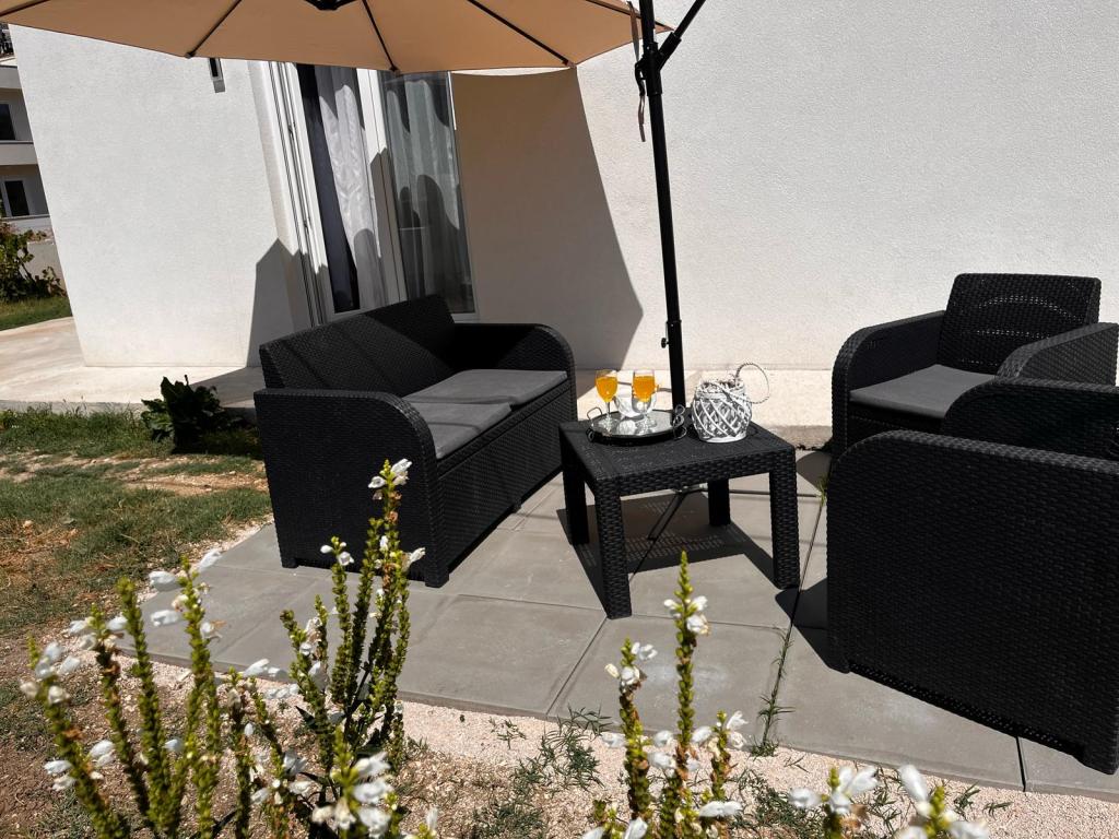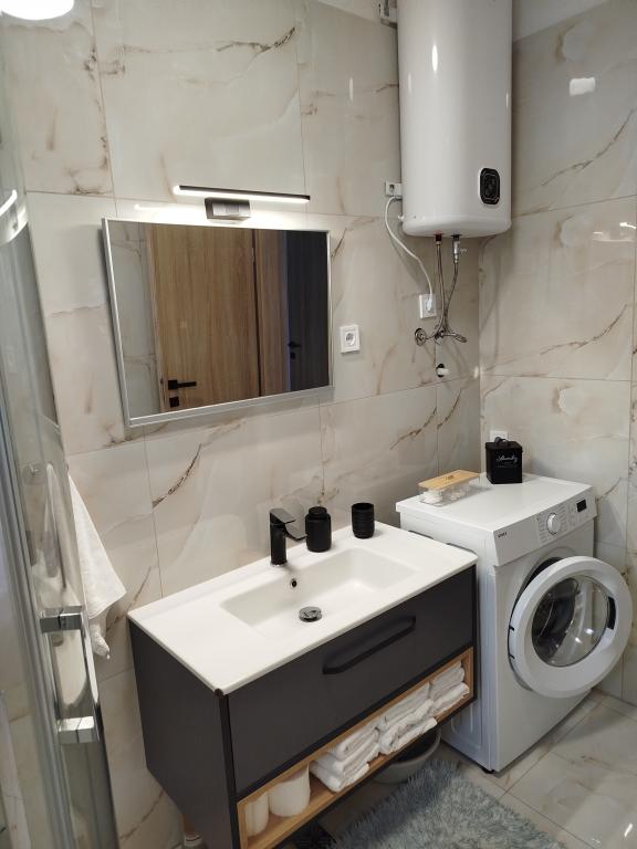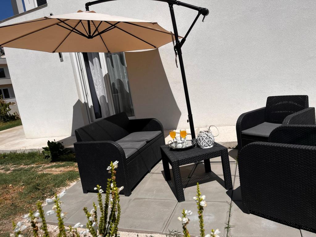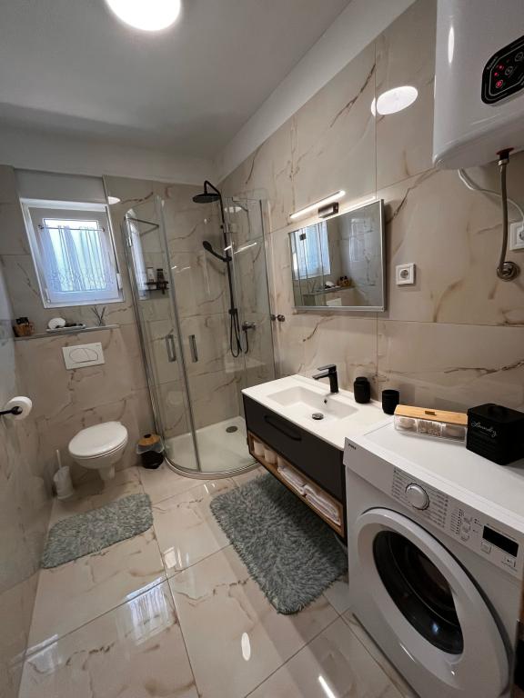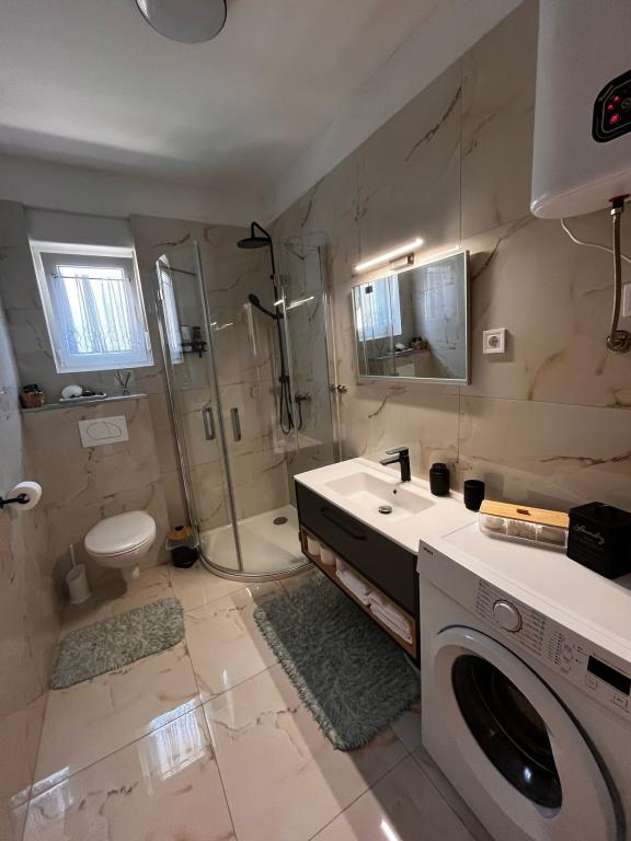 Tento apartmán se nachází v centru Kaštel Gomilica, přesně 11 km od 2 měst UNESCO, Splitu a Trogiru. V blízkosti apartmánu se nachází oblíbený hrad Kaštilac ze 16. století. Byt se nachází v přízemí nově postaveného rodinného domu, má bezplatné Wi-Fi, bezplatné soukromé parkoviště, klimatizaci, 1 ložnici a 2 ložnice, koupelnu, luxusní obývací pokoj a moderní kuchyni, která je plně vybavena obývacím pokojem pokoj a obývací pokoj s TV. Poloha je ideální pro rodiny s dětmi, které mají rádi dlouhé procházky a projížďky na kole podél moře přes všech 7 částí města Kaštela.