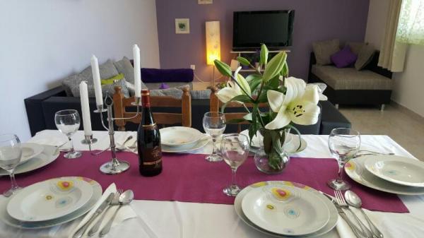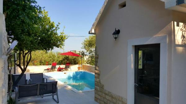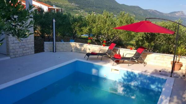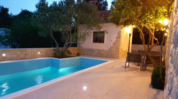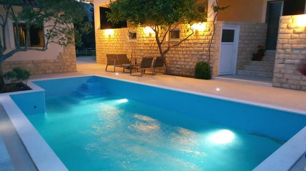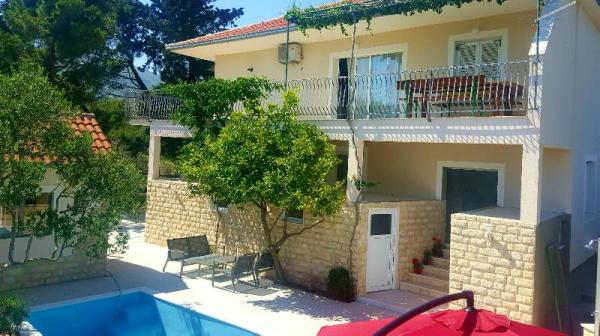 Plně zařízený, modrého domu s bazénem v oblasti Rudine, Kastel Novi. V areálu se nachází na úpatí hory Kozjak, obklopené zelení, která nabízí úchvatný výhled na Kaštela Bay, Split a ostrovy. Perfektní oáza klidu strávit dovolenou v příjemném prostarnoj doma, vybavený bazén, klidné a příjemné noci, a přesto v blízkosti všech zajímavostí. Jsme nachází 5 km od letiště, 15 km od Splitu a 8 km od Trogiru. Po dobu 5-10 minut autem jste na krásných plážích. Pro milovníky přírody, horské pěší a cykloturistiku, za domem jsou svazích hory Kozjak, stejně jako krásný resort biblického zahrady, což je, jak sám název napovídá ráj na zemi. Prostorný apartmán má 3 ložnice, koupelna, WC, kuchyň, jídelna a obývací pokoj, plně zařízené. Terasa 30 m2, s krásným výhledem a stínu, ideální pro letní bydlení. Dvůr má spoustu místa na hraní, velké parkoviště pro 4 auta, domov pro grilování a velkou olivovník