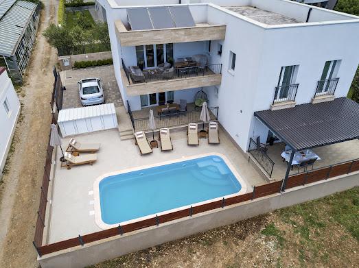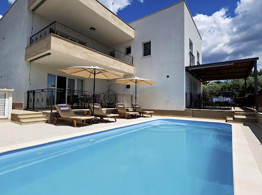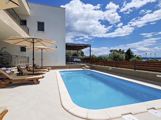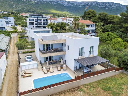 Apartmány 3D jsou nové luxusní apartmány s bazénem a snídaní v ceně, vybavené vším, co potřebujete pro relaxační dovolenou. Nabízíme skutečný klid a nezapomenutelnou dovolenou obklopenou mořem, olivovníky a horami. Vzdálenost od apartmánu k pláži je 150 metrů a od moře 100 metrů. Z jižních teras a severní strany je široký výhled na moře směrem k hoře Kozjak. Dům se nachází v klidnější části Kaštel Sućurac s minimálním provozem a pohybem lidí. Opravdu klidná a přírodní dovolená, kterou každý potřebuje během rychlého životního stylu. Prostorné terasy a krásný bazén pro relaxaci s čerstvým šálkem kávy nebo sklenkou místního vína. S partnery můžeme zorganizovat výlety na okolní ostrovy Hvar, Brač a Vis, do národních parků Krka a Plitvická jezera a do blízkých měst Split a Trogir. Nejbližší restaurace a plážový bar jsou vzdálené 150 metrů a nabízejí místní jídlo a koláče.