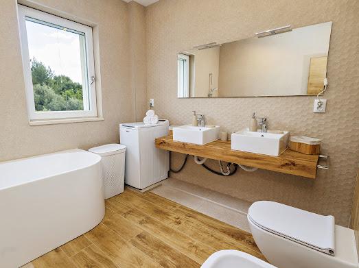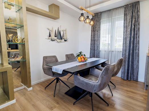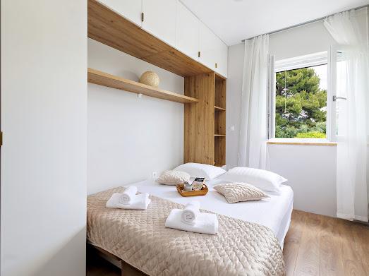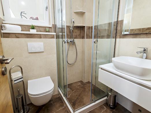Byt je dostatečně prostorný až pro 4 dospělé a má 2 plně vybavené koupelny. Interiérový design je vybrán velmi vkusně, s minimalistickou barevnou směsí a příjemnými dekoracemi. Spotřebiče a zařízení bytu jsou špičkové a je na nich vidět hodně času a péče byly začleněny do jeho koncepce. Čisté, dobře osvětlené, v klidné oblasti, s úžasnou terasou, kde si můžete dopřát ranní kávu a přitom cítit mořský vánek. Hostitelka bydlí nahoře a často nás překvapila výborným jídlem a dárky. Opravdu je to úžasný člověk, který nám nabízí spoustu rad ohledně místních restaurací a atrakcí a vždy nás vítá se širokým úsměvem a je připraven s námi mluvit o našem dni. Není si na co stěžovat, opravdu to vypadalo jako druhý domov a pokud a až znovu navštívíme Chorvatsko, toto je místo, kam se budeme vracet.