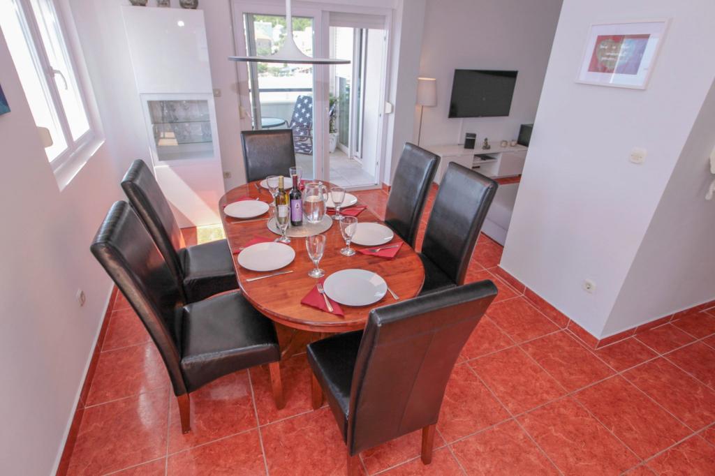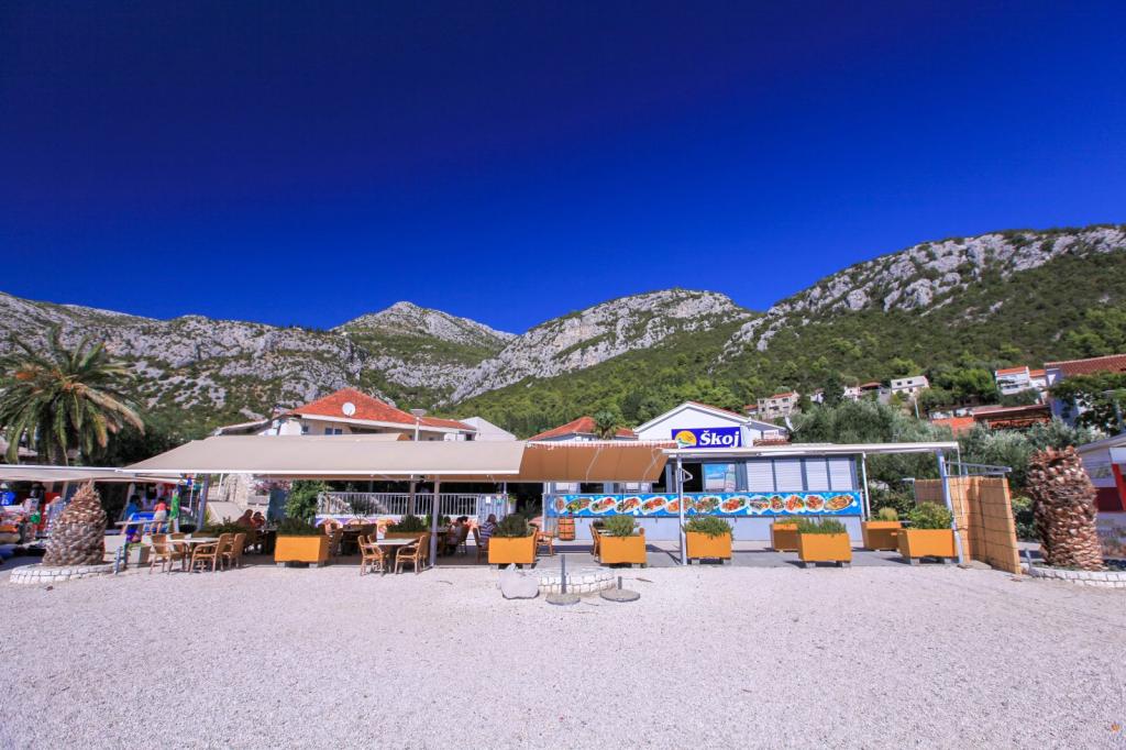 Těsně nad pláží dole byla otevřena nová restaurace s barem „The Bridge“. Na soukromé terase necelých 100 metrů od domu si můžete přímo od hostitelů objednat místní dalmatské speciality a poznat tak kouzlo místní atmosféry. Jídlo si můžete objednat přímo na terase vašeho bytu. Dětské hřiště se nachází 200 m od bytu.