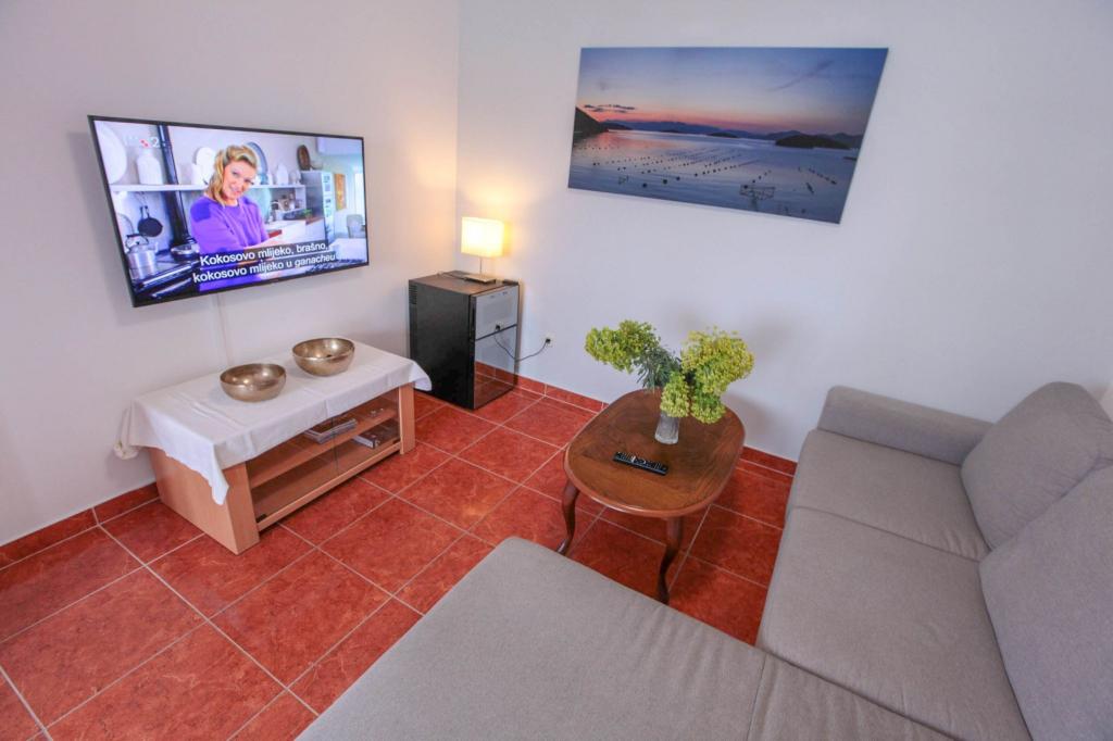 Apartment Empire vám navíc nabízí luxusní nábytek, jedinečný výhled ze tří teras na moře a tři malé ostrovy poblíž poloostrova Pelješac a možnost ochutnat speciality dalmatské kuchyně. Nachází se v malé oblasti Komarna v jižní Dalmácii, 70 km od pravé perly Jaderského moře - Dubrovníku. Komarna je ideálním místem pro velmi zajímavé výlety autem a lodí. Dubrovník, krásná místa na poloostrově Pelješac, Orebić, Korčula, ochutnávka ústřic a slávek a ochutnávka vynikajících vín ve slavných vinařstvích. Velmi zajímavé je také fotografické safari v údolí Neretvy a podzimní kolekce mandarinek a fíků. Velkou výhodou je blízkost bosenského letoviska Neum (10 km), kde si můžete koupit potraviny a pohonné hmoty mnohem levněji než v Chorvatsku. Celý byt je nově vybaven v roce 2019 (kuchyň, lednice, nábytek, matrace, pračka, 4K TV, LED světla) Byt je ideální pro skupinu přátel, může ubytovat až 9 hostů.