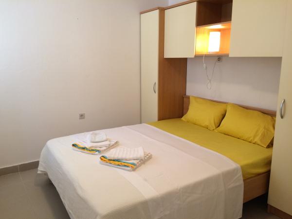Pobytová taxa je v ceně.Byt je vybaven, se skládá z ložnice s manželskou postelí, kuchyň, která promění velká lednice s mrazákem, myčka nádobí, mikrovlnná trouba atd, jídelna, obývací pokoj s rozkládací pohovkou a koupelna s pračkou. Obsahuje dvě terasy s výhledem na moře a zpět, a to jak pokryty. Kromě toho se na všechna okna a dveře byly instalovány moskytiéru. K dispozici je také lehátka a měkké ručníky, TV a Wifi.