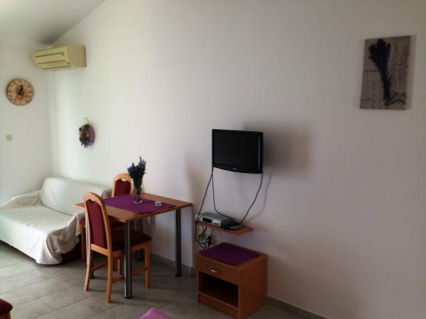 Velmi pěkné apartmány. Kuchyňský kout s hrnce, příbory, sklenice, talíře a mísy. Minuli jsme jen rychlovarnou konvicí. V bytě jsou také ručníky, ložní prádlo a dokonce i utěrky. To bylo v podstatě vše potřebné pro funkci. Vše čisté bez poskvrny. K moři sestupuje po schodech, a budete muset chvilku jít, ale bez tragédie. Pláž je poměrně velký platforma zpevněné, soukromý byt pro Dalmatino. Lehátka jsou zdarma asi 12 kusů pro všechny hosty příliš málo, ale my jsme neměli žádné problémy. Vždy pomalu vyhazovač byl. V apartmánu chladném grilu, které mohou být použity. Majitelé velmi pěkné a jednoduché jít. Celkově lze říci, opravdu doporučujete apartmány. Doporučuji na 100%.