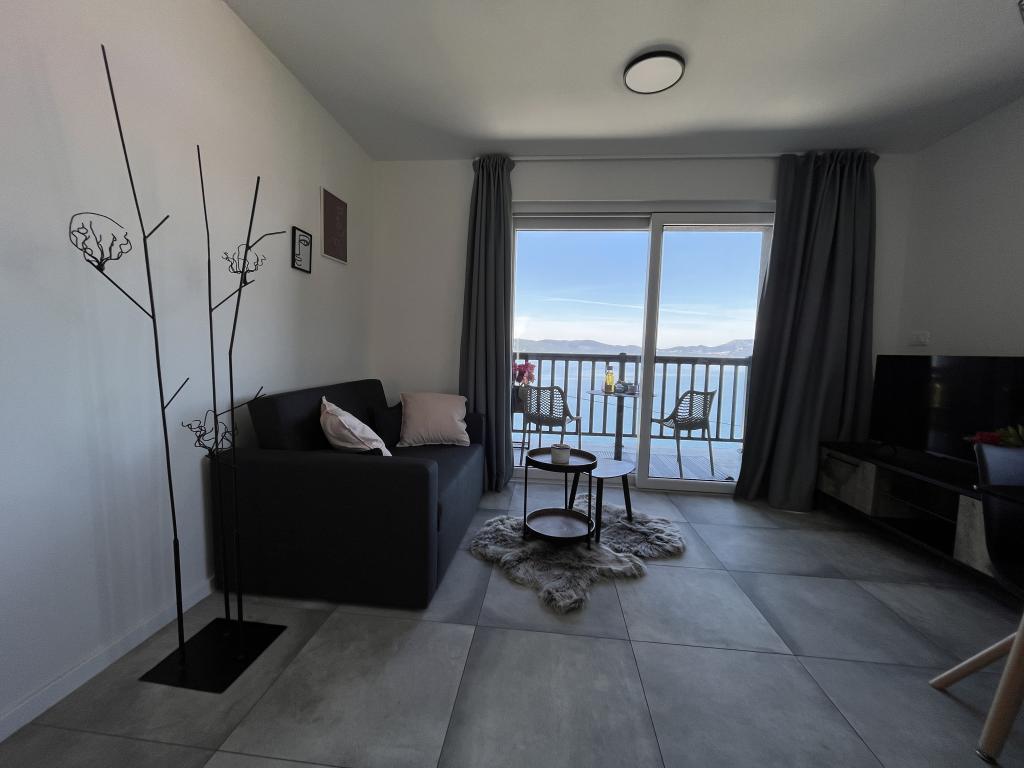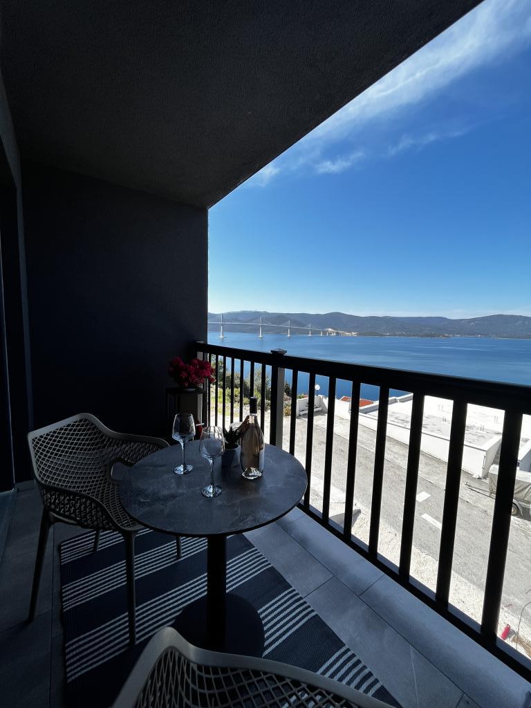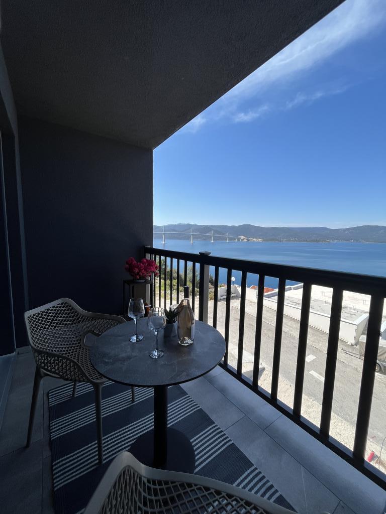 Někde mezi nebem a mořem: "Apartmány Ora". Tyto krásné apartmány se nacházejí na vynikajícím místě, nedaleko pláže a na klidném místě s fantastickým výhledem na moře, most Pelješki a působivé okolí. Kromě neuvěřitelného výhledu nabízí toto zařízení vše, co potřebujete pro příjemný pobyt. Uvnitř zařízení najdete vše, co potřebujete pro klidný a bezstarostný spánek, včetně klimatizovaných pokojů s moderním nábytkem a bezplatným Wi-Fi. Apartmány jsou moderně zařízené s dostatkem přirozeného světla a okny, které se otevírají s výhledem na moře a krásnou krajinu. Stručně řečeno, nemovitost s výhledem na moře a most Pelješki poskytuje perfektní kombinaci krásné krajiny, pohodlí a klidu, stejně jako blízkost pláže a dalších turistických destinací. Kromě toho mohou návštěvníci Komarny a okolí zažít špičkovou nabídku vín a objevit bohatou vinařskou tradici této oblasti návštěvou vinařství Rizman a Terra Madre.