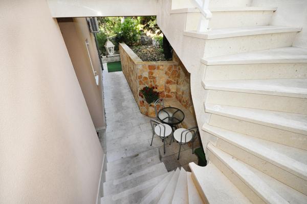 Vítejte na Villa Vinko, ubytování jen 10 metrů od moře, kde si můžete vychutnat pohled a poslouchat relaxační zvuky moře z balkonu. Naše šesti apartmány jsou ideální pro skupiny lidí, páry i rodiny s dětmi a ty, kteří si chtějí užít na molu v přední části bytu, nebo velké oblázkové pláže se nachází jen 60 metrů od hotelu. Byt o 32 m2 budete mít k dispozici plně vybavenou kuchyň, klimatizovaný obývací pokoj s manželskou postelí a TV / SAT v ceně, koupelna se sprchovým koutem, ložnice s manželskou postelí a balkonem s výhledem na moře a pláž. Dům je obklopen borovicemi a oleandry.