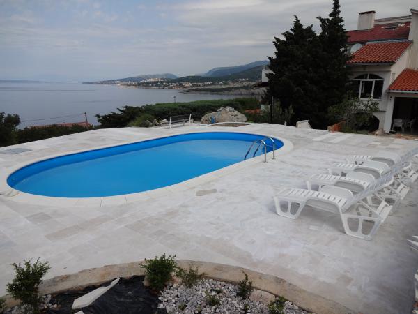 Villa Marlin se nachází v klidném místě, pouhých 200 metrů od moře v Klenovica, klidné rybářské vesnice jen 15 minut jízdy autem od Novi Vinodolski. Objekt nabízí apartmány s vlastním stravováním s klimatizací a terasou s výhledem na moře. Budova má velký bazén, který je k dispozici všem hostům, a velký dvůr s posezením a dvě grilem. Všechny apartmány jsou vybaveny kuchyní, jídelnou a obývací pokoj s TV se satelitním příjmem. Ty mají vlastní koupelnu a terasu. Nejbližší obchod s potravinami a restaurace, která nabízí místní kuchyni a rybí speciality jsou 100 metrů od Villa Marlin. Hlavní autobusové nádraží ve městě Novi Vinodolski je vzdáleno 8 km. Krk letiště se nachází 25 km od domu, a na vyžádání je možné zajistit dopravu z letiště. V rámci objektu k dispozici bezplatné parkování. Vítejte!