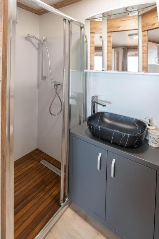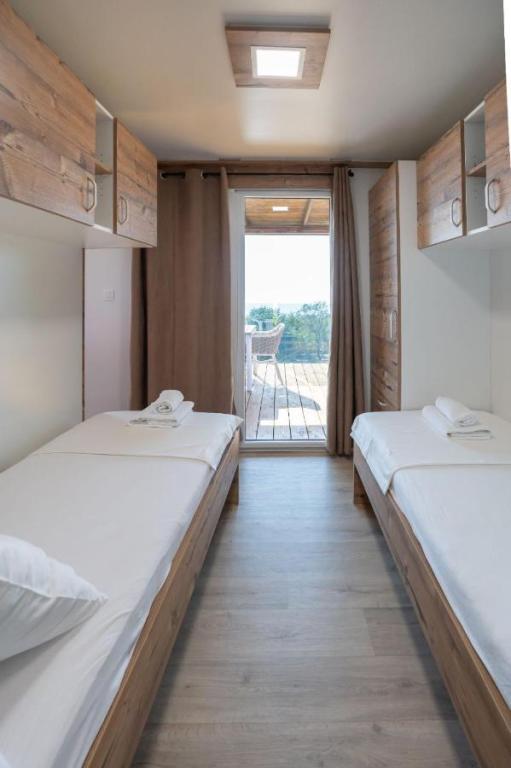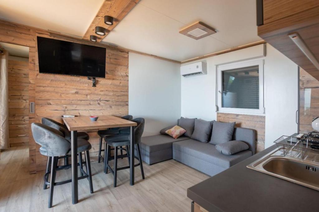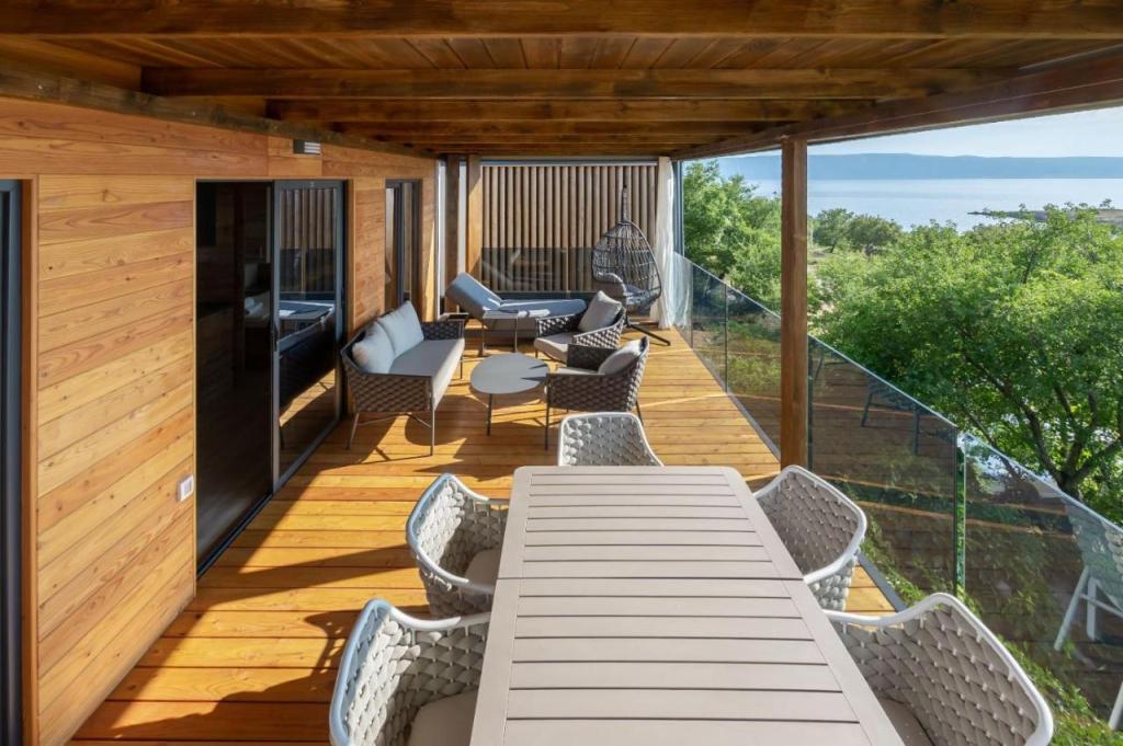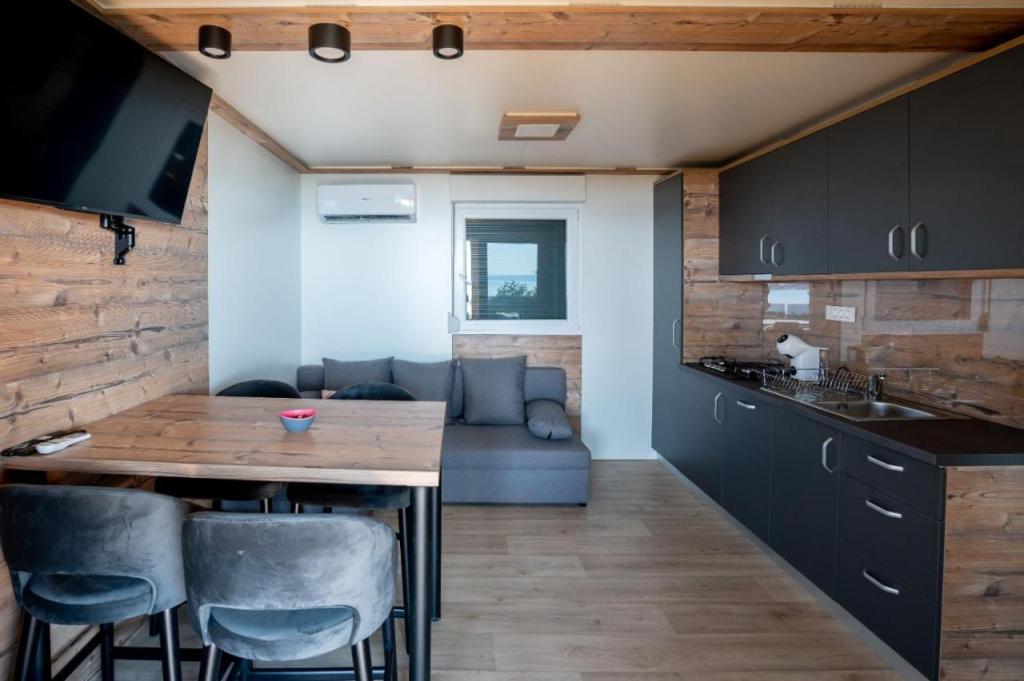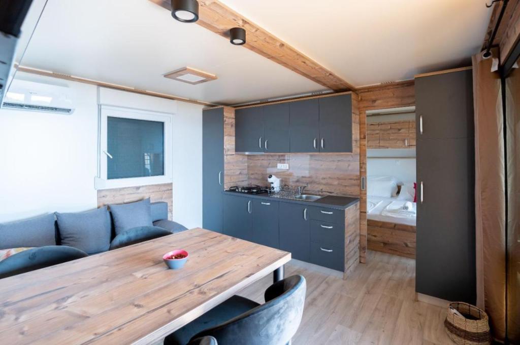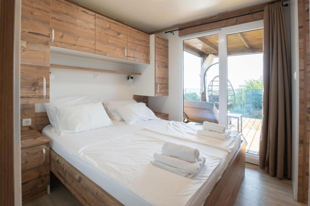 K pronájmu luxusně vybavený mobilní dům s krásným výhledem na moře, ideální pro vaši ideální dovolenou. Naše chata nabízí dokonalou kombinaci komfortu a přírodních krás, což vám umožní zcela relaxovat a užívat si. Užijte si nádherný výhled na moře každý den z prostorné terasy, vybavené pohodlným nábytkem, ideální pro posezení a relaxaci, stejně jako pro trávení času s rodinou a přáteli. Mobilní dům má vše, co potřebujete pro pohodlný pobyt, včetně moderní kuchyně, stylové koupelny a rychlé WIFI pro nepřetržité připojení. Nachází se jen pár kroků od křišťálově čistého moře a krásné pláže, která vám umožňuje snadný přístup k mořským aktivitám. Hlídané parkoviště vám zajistí naprostý klid během celého pobytu. Kromě toho je vám k dispozici gril pro přípravu chutných jídel venku. Tento mobilní dům poskytuje ideální místo pro vaši příští dovolenou. Nenechte si ujít příležitost a rezervujte si pobyt ještě dnes!