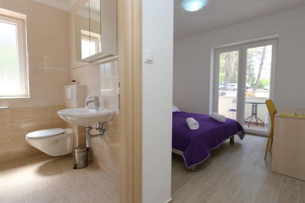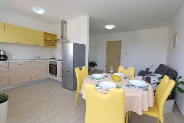 Dům s několika apartmány. V osadě Soline 1 km od centra Klimna, slunná poloha, 70 m od moře, 70 m od pláže, přes silnici. Společné: pozemek 800 m2. V domě: internetové připojení, billiard, stolní fotbal (pro společné užívání). Parkování u domu na pozemku. Obchod 900 m, restaurace 1 km, oblázková pláž, betonová pláž 70 m. Apartmán 67 m2, v 1. patře. Obývací pokoj / jídelna 25 m2, 1x pohovka pro 2 osoby a TV-satelit. (TV s plochou obrazovkou), klimatizace. Vstup na balkon. 2 pokoje, každý pokoj s 1 manželskou postelí (2 x 80 cm, délka 200 cm), sprcha / bidet / WC a klimatizace. Vstup na balkon. Otevřená kuchyně (trouba, myčka, 4 sklokeramické varné desky, mraznička, elektrický kávovar, rychlovarná konvice). Balkon 11 m2, balkon 5 m2. Balkonový nábytek. K dispozici: trezor, dětská postýlka. Internet (bezdrátová síť LAN [WLAN], zdarma). 1 zvíře / pes povoleno.