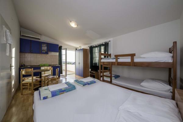 Moderní a moderní apartmány a pokoje v Kolan na ostrově Pag, 1 km od písečných pláží Sv. Duh. , Čisté, píštěle. Dům obsahuje dětský koutek a je ideální pro rodinné šatníky.
