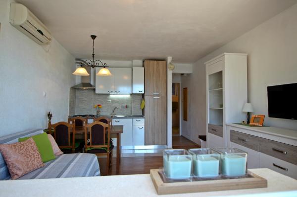 Pobytová taxa je v ceně.Cena apartmánu zahrnuje využití 2 lehátků na pláži Jurkovica - jen pár kroků od apartmánu. Pračka je k dispozici pro sdílené použití.