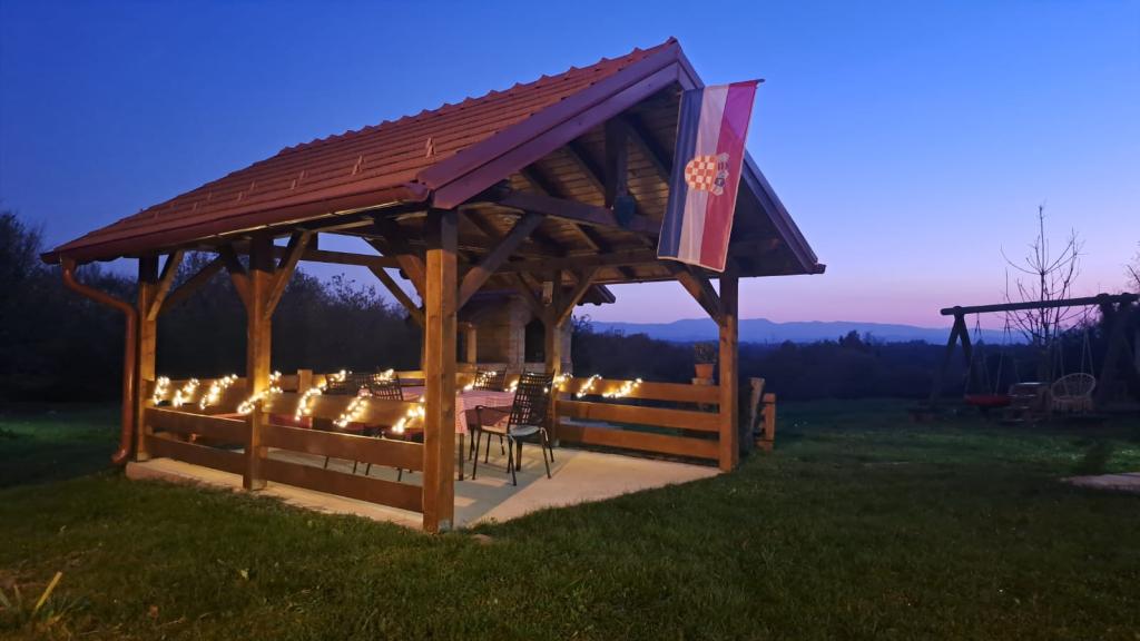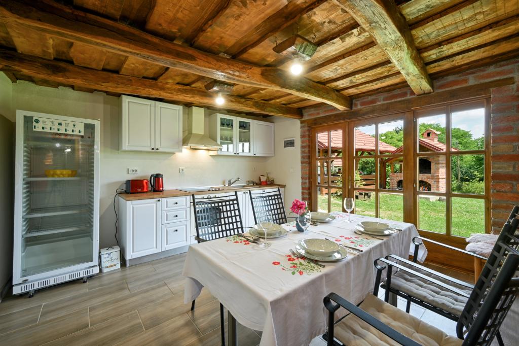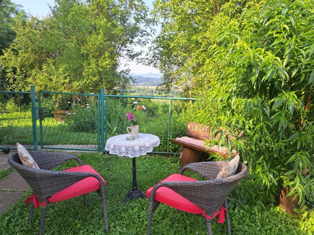 Rekreační dům Kokotova hiža se nachází v malé vesničce Klimen v chorvatském Zagorje. Skládá se ze čtyř dřevostaveb, domu 55 m2, altánu 20 m2 se zděným grilem a budovy s altánem 20 m2, altánu s vířivkou pro 5 až 7 osob, parkování zdarma, Evo-tv, Wi-fi, dětské hřiště, houpačky pro dospělé i děti, výhled na jednu stranu na horu Ivanščica a na druhou na horu Medvednica. Oplocený dvůr domu je ideální pro domácí mazlíčky. Zahrada 700m2. Dům se skládá z kuchyně, koupelny a obývacího pokoje v přízemí a ložnice v podkroví se třemi lůžky. V obývacím pokoji je rozkládací sedací souprava pro dvě osoby. Ve stáji je společenská místnost a koupelna. Dům je na samotě na okraji lesa a je ideální pro dovolenou i zábavu větší skupiny.