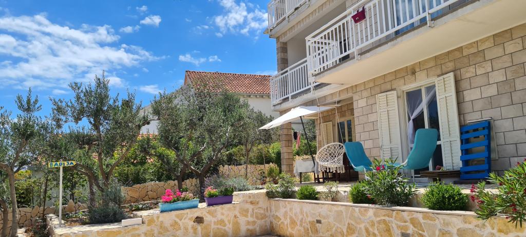Dům Škoji k pronájmu na ostrově Korčula, v ráji Chorvatska. Nově postavený a plně vybavený "Škoji", který se nachází mezi městem Korčula a městem Lumbarda podél zálivu Soline, nabízí mimořádný výhled na celý záliv a okolní ostrovy a ostrůvky. Čtyři apartmány, tradiční středomořská minimální architektura a prostorný venkovní obývací pokoj s grilem, středomořskou zahradou, sup boardy, jízdními koly a plážovými lehátky...všechny služby...vše zahrnuto v nabídce. Prožijte svou dovolenou na místě, kde si můžete užívat přírodu, a připravujte si jídla s extra panenským olivovým olejem ze zahrady. Pod domem je malá pláž, dost na relaxaci a koupání, a vedle pláže je nabízený motorový člun Key Largo Sessa s 60 hp, se kterým je relaxační plout na nedaleké ostrovy a zátoky, úžasný zážitek . K dispozici jsou čtyři parkovací místa a v celém objektu je k dispozici Wi-Fi. Plně vybavené apartmány Badija/4+2/, Majsan/4+2/, Sutvara/4+2/ a Vrnik/2+2/ s krásným výhledem na moře, přičemž okolní zahrady vytvářejí ideální prostor pro obývací pokoj , zatímco výzdoba interiéru je klidná, uklidňující a jednoduchá - ať se u nás na Korčule budete cítit jako doma.
