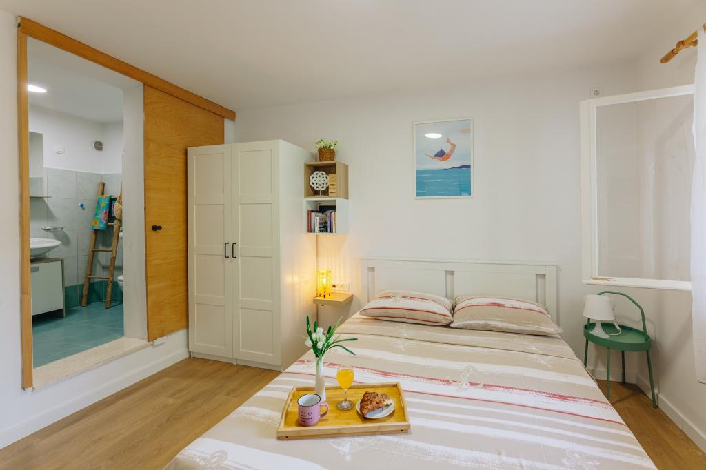 Apartmán Dinko je jednoduchý a pohodlný malý dům na pláži, který se nachází v klidné zátoce Žrnovska Banja, jen pár kroků od moře, a je zcela chráněn před zraky kolemjdoucích, obklopen olivovými háji, citrusovou a zeleninovou zahradou. pro tebe. Pokud chcete uniknout všednímu životu a od všeho si odpočinout, jste na správném místě! Okamžitě se spojíte s Dinkem, dodají vám zvláštní uklidňující atmosféru a stanou se vaším druhým domovem! Představte si svou první ranní kávu na terase ... sledujete křišťálově čisté moře, posloucháte cvrkot ptáků a cvrčků, vdechujete vůni pomerančů, oliv a aromatických bylin ... Byt se skládá z plně vybavené moderní kuchyně, 2 ložnice, 2 toalety a koupelna, 2 prostorné terasy s výhledem na moře a parkování pro 2 vozidla. Klimatizace, neomezený internet, TV (digitální a satelitní kanály), gril. Ideální pro rodiny s dětmi, páry a přátele. Přijďte si dopřát a užít si to! Dinko se na vás těší!