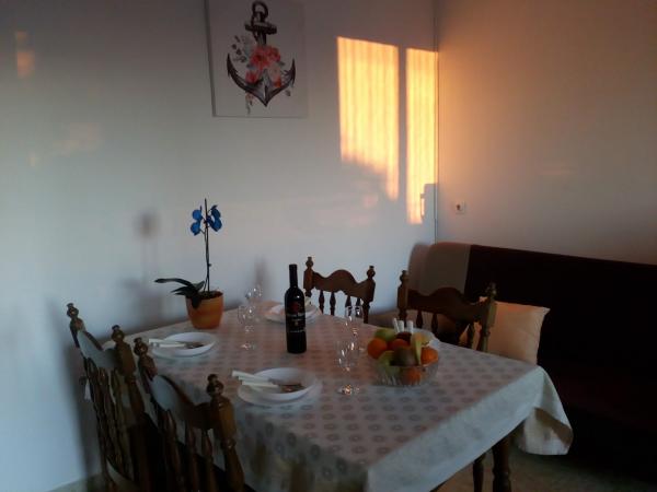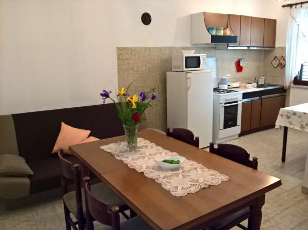 Plně vybavený prostorný byt v rodinném domě s výhledem na moře. Upravená zahrada, hlídané parkoviště, klidné rodinné prostředí, terasa.