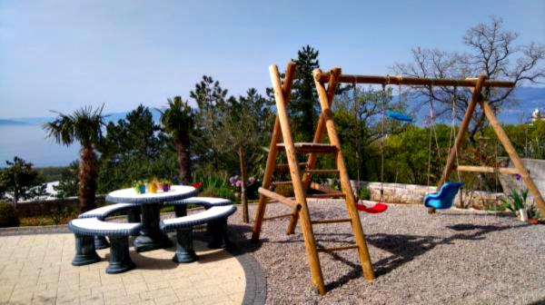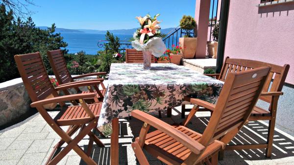 Výhodou tohoto bytu je krásný výhled na moře, klidné místo a velkou, dobře udržovaná zahrada plně vybavené pro zábavu pro děti i rodiče relaxovat. Je to ideální místo k prozkoumání, která se nachází mezi Crikvenica atraktivní a krásné Opatiji a ostrov Krk, nedaleko Rijeky. V blízkosti jsou také Národní park Risnjak a Park Přírodní park a můžete si udělat výlet na Plitvická nebo Aquaparku Istralandia. Všechna zařízení se nachází ve vzdálenosti 3 minut jízdy autem: pláže, obchodů, čerpacích stanic, lékař, lékárna, pošta, restaurace.... Ke každému bytu náleží parkovací stání a samostatný vchod a vchod do bytu a terasa na opačné straně domu tak, že každý host má své soukromí. Fmily frendly Byt Anika se nachází v přízemí a Ani v horním patře domu. Oba mají nádherný panoramatický výhled na Kvarneru. Ani Byt, 85 m2, ložnice a obývací pokoj Anika, 56 m2, má dvě propojené pokoje s oddělenou kuchyní a jídelnou.