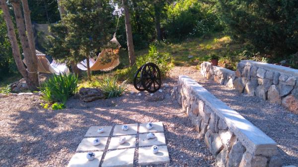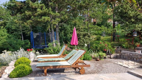 Pobytová taxa je v ceně.Oba apartmány mají k dispozici velkou zahradu s řadou zařízení určených pro zábavu dětí a rodičů relaxaci. Bezplatné Wi-Fi v celém pozemku, který má řetězení zdobený spoustou kamennými zdmi, takže každá část má vlastní soukromí. K dispozici je venkovní sprcha a opalování s lehátky, houpací sítě, velká trampolína, houpačky, altán zdobená jako zahradní kuchyň s prostorem pro přípravu pokrmů a stolování. Blízko zahradní sprcha je malá, kruhová ohniště s nimiž večery můžete nyní praskající oheň v pražené kukuřice, atd...Dům i zahrada jsou obklopeny stromy, v klidné oblasti, kde se zpěvem z mnoha ptáků ve večerních hodinách často vidět jeleny a veverky.