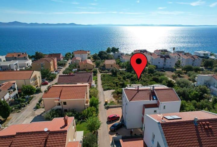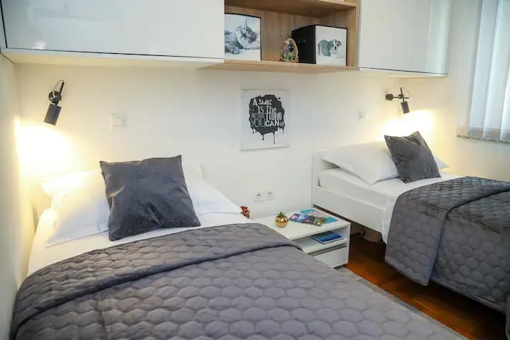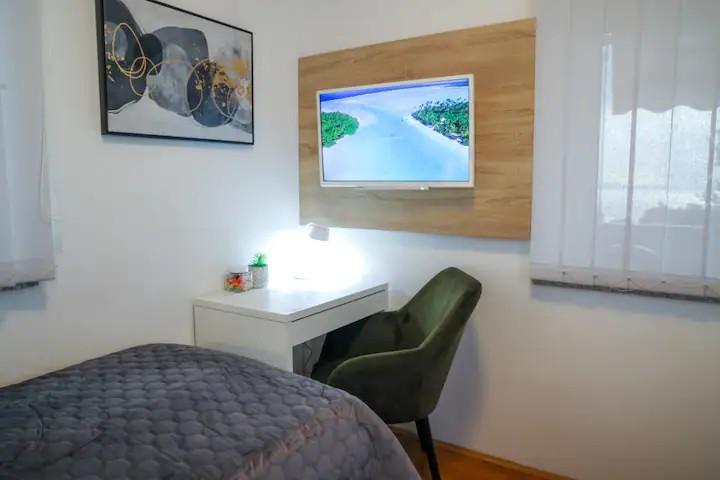 Apartmán Mare Blu je jen 150 m od moře. Na svých 53 m2 pojme 4+1 osoby ve dvou moderních ložnicích s chytrými televizory, jednou koupelnou, plně vybavenou kuchyní, harmonicky zařízeným obývacím pokojem a jídelnou. Byt je vybaven 2 klimatizačními jednotkami. Byt má lodžii a posezení, kde si můžete dát ranní kávu nebo sklenku vína a užívat si letních večerů. Hosté mají také k dispozici jedno soukromé parkovací místo. Vzhledem k tomu, že se byt nachází v přízemí, je vhodný pro osoby se zdravotním postižením. Žádné dodatečné náklady. Kožino je známé pro své čisté moře a pláže obklopené borovými lesy a středomořskou vegetací. Milovníci přírody na tomto místě jistě najdou své útočiště u pohostinných hostitelů. Nedaleko se nachází krásný Lounge & Cocktail Bar s krásnou pláží, kde si můžete vychutnat vynikající jídlo a koktejly, pozorovat moře a západ slunce. Nenechte si ujít návštěvu apartmánu Mare Blu a zažijte skutečnou dovolenou!