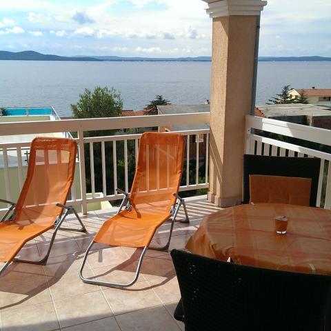 Dům se třemi apartmány nedaleko borovic 80m od pláže. Apartmány se nachází ve druhém patře a každý apartmán má velkou terasu s výhledem na moře Ideální pro relaxační rodinnou turistiku, děti, mladé roantične páry a seniory. Obchod a restaurace se nachází 500m od domu. Poblíž ve vzdálenosti několika kilometrů existují sportovních a zábavních zařízení, písečná pláž a supermarkety. Všechny apartmány jsou plně vybaveny. Do centra Zadaru je vzdáleno 8 km. Doporučujeme navštívit národní parky: Kornati, Plitvice, Krka a Paklenica Velebit.