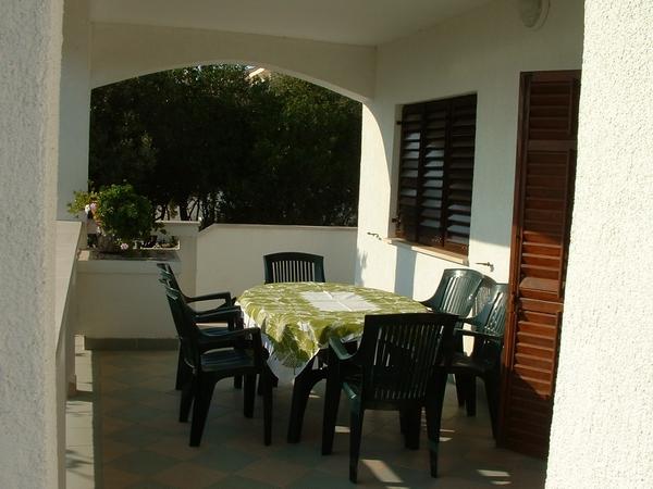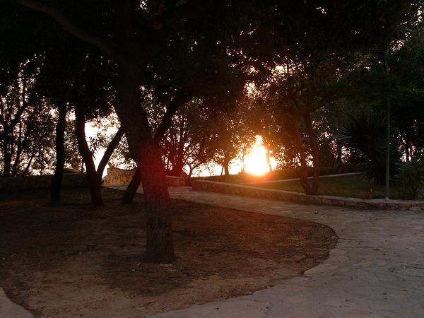 Zvláštní atmosféra je v zeleném stínu malého parku před domem s rybářskou altánem a krbem s výhledem na moře.