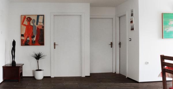 Byt se nachází v klidné staré části města Umístění na patře 100 let starý kamenný dům. 60 m2, nově zrekonstruované třípokojový apartmán se skládá z velkého obývacího pokoje, který zahrnuje kuchyň a jídelna, dvě ložnice, koupelna (s WC a sprchový kout) a terasou. Terasy je 25 m2 ve velikosti, s krásným výhledem na Pašman Channel, Biograd, benediktinský klášter sv Kosmy a Damiána a františkánský klášter sv Duje. Na pláži je 5 min chůze.