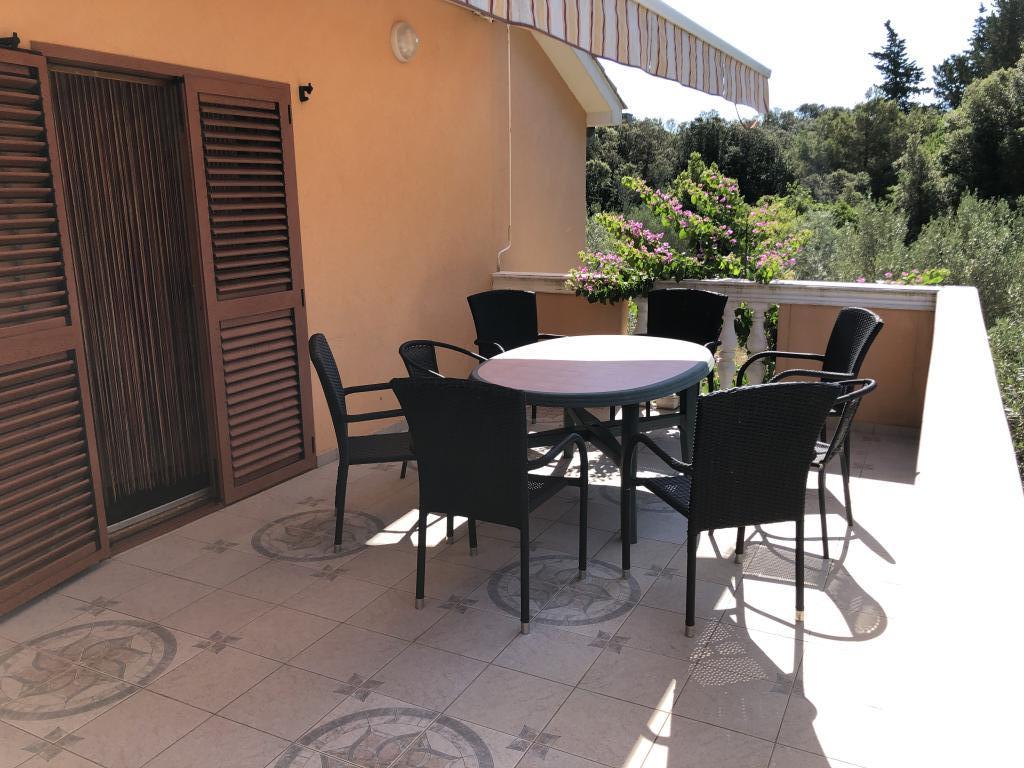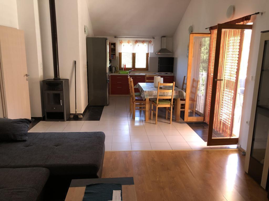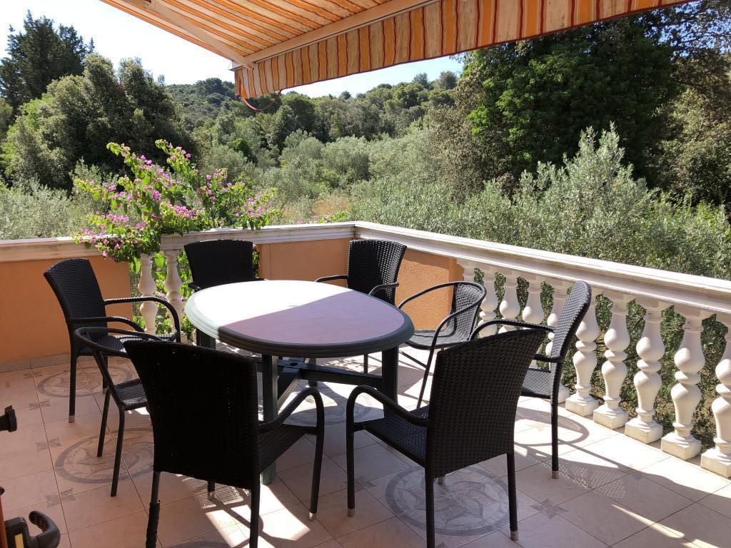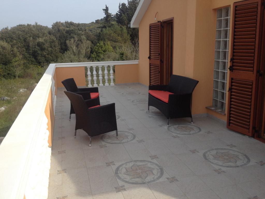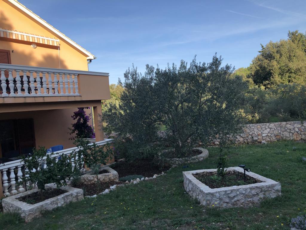Dům se nachází v přízemí 1000m2, mírně oddělený od ostatních domů. Dům je nově postavený, k pronájmu celé patro (100m2) se dvěma velkými terasami (35m2 a 16m2). Nedaleko domu je parkoviště pro dvě vozidla. Za domem je kamenný krb a ovocný sad. 6 minut pěšky od krásné písečné pláže ideální pro malé děti.