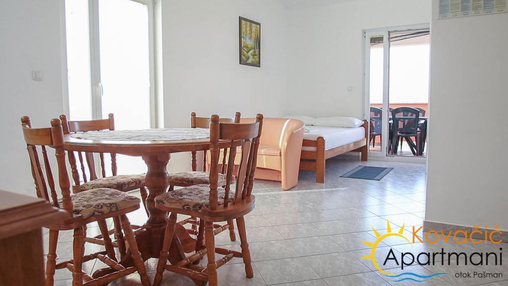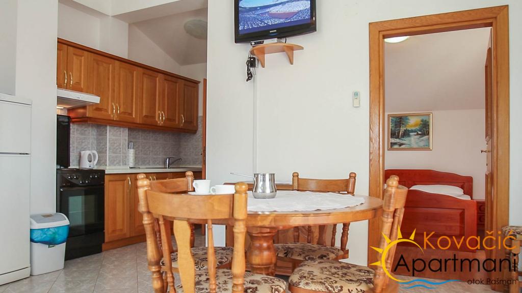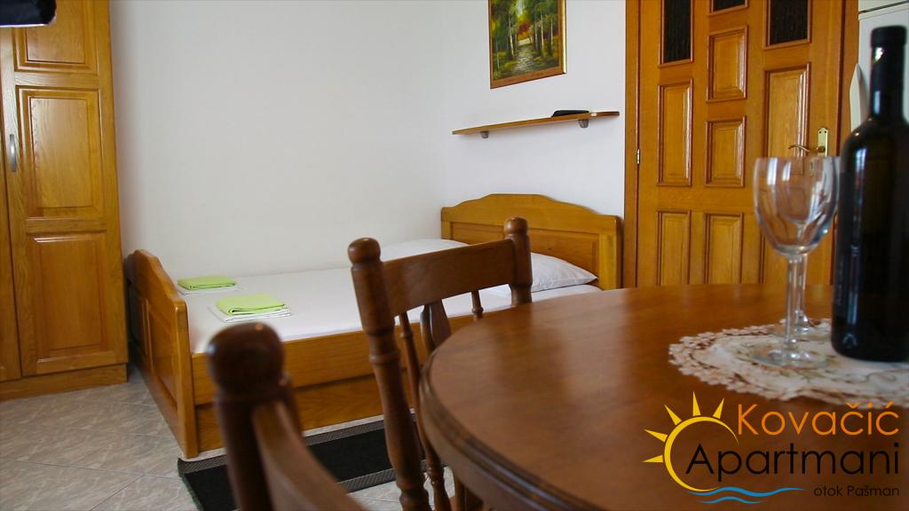 Nabízíme Vám dovolenou v míru s rodinou v nových, moderních apartmánech a krásných plážích na ostrově Pašman. Každý apartmán má koupelnu se sprchou, kuchyň s nádobím pro přípravu a podávání jídel a nápojů a příborů, lednici s mrazákem, ložní prádlo, klimatizaci, LCD TV a satelitní příjem signálu, terasu 4x2, 5 m s výhledem na moře a zabezpečené parkovací místo. Ve dvoře bytu je gril, posezení a konzumace potravin, které můžete volně využívat a relaxovat v přátelské společnosti s kvalitními čerstvými rybami. V bezprostřední blízkosti bytu poblíž Tkonu se nachází klášter zasvěcený sv. Benediktu, unikátnímu klášteru tohoto typu v této části Evropy. Klášter pochází z 11. století a během historie utrpěl různé destrukce a škody. Ve 14. století byl přestavěn v gotickém stylu. Dnes je to skutečná oáza míru a duchovnosti. Nachází se na kopci s krásným výhledem na ostrovy a pevninu od Biogradu po Ravni Kotar, jezero Vrana, Velebit a Dinara. Část kláštera a klášterní zahrada s promenádou kolem kláštera jsou přístupné veřejnosti a často slyšíte výroky nadšených návštěvníků, kteří správně tvrdí, že se jedná o „nebe na zemi“. Prostor je vhodný pro dovolenou pro rodiny s malými dětmi a lidi, kteří si chtějí užít čistý vzduch, moře, mír a zeleň, která oplývá ostrovem Pašman. Vzhledem k jemné krajině a konfiguraci ostrova jsou populární rekreace a cykloturistika a pláž nabízí možnost zahrát si plážový volejbal a spoustu zábavy pro vaše nejmenší. Pokud jste rodičem malého dítěte, strávíte dovolenou bez velkého stresu ohledně péče o bezpečnost vašeho dítěte, protože pláž je písčitá s mělkým povrchem vhodným ke hře, který se nachází v blízkosti bytu, se stinnou částí a stínem, takže můžete na pláži zůstat celý den na citlivost vaší pokožky. Přijďte a objevte kousek