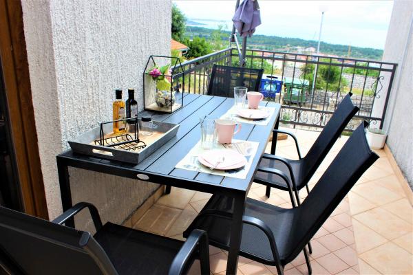 Byt v rodinném domě o rozloze 50 m2 nabízí příležitost pro bezstarostný letní požitek. Skládá se z kuchyně s jídelnou a obývacím pokojem, ložnice a koupelny, balkonem s výhledem na moře a samostatné terasy s grilem. Byt je nově zrekonstruovaný a plně vybavený (myčka, sporák, trouba, toustovač, lednice, klimatizace). Na dvoře je parkovací místo. Domácí zvířata jsou vítána za příplatek (10 dní v EU) Nejbližší pláž je vzdálená 800 m, nejbližší obchod je 200 m. Centrum města 800 m od budovy obsahuje veškeré potřebné vybavení (pošta, banka, lékárna, obchody, kavárny, restaurace) Nedaleko Rijeky (18 km), Crikvenica (12 km), ostrov Krk (5 km).