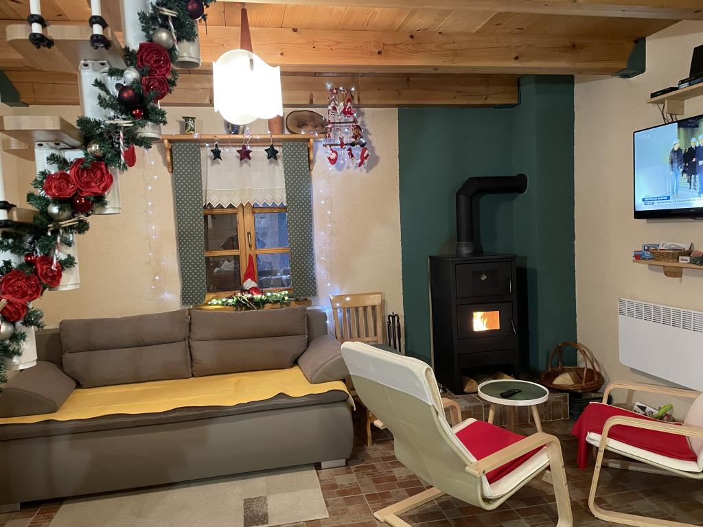 Rekreační dům Hiža&Vila (3*), kapacita pro 4 osoby, plně vybavený, umístěný v klidné, zelené a romantické krajině. Pohled z terasy vám vyrazí dech. Jsi sám v domě. Ložnice na galerii, velký obývací pokoj (TV, WI-FI), jehož součástí je plně vybavená kuchyň se základními potřebami (sporák, trouba, digestoř, lednice s mrazákem, toustovač, varná konvice, elektrická trouba), koupelna se sprchovým koutem. V chladnějších dnech krb na dřevo zahřeje dům a vytvoří další atmosféru. Centrum je vzdáleno cca 1000 m (restaurace, muzeum krapinských neandrtálců, pošta, lékárna, kavárny, obchody... Přes týden, o víkendu, na kratší i delší dobu. Vždy je třeba jít někam do klidu. A buďte v klidu, s rodinou, přáteli, za zábavou, romantikou, relaxací, požitkem Přijďte do Zagorje Bajka na dlana, Hiža&Vila, Trški Vrh 57H.