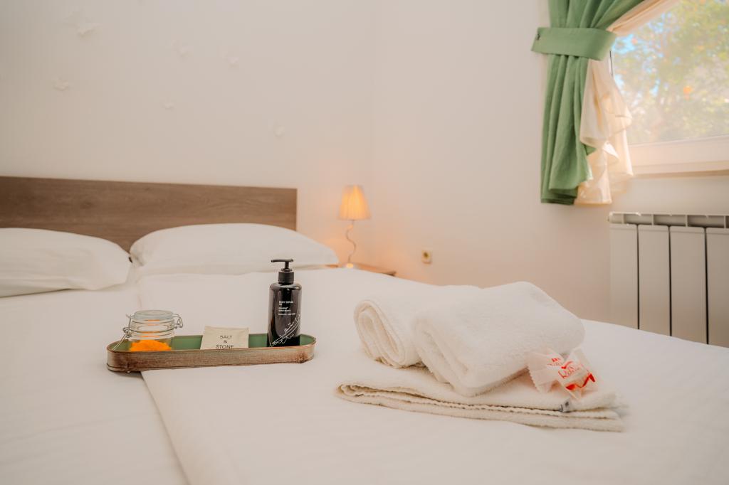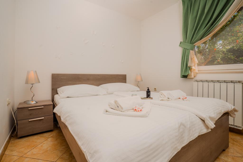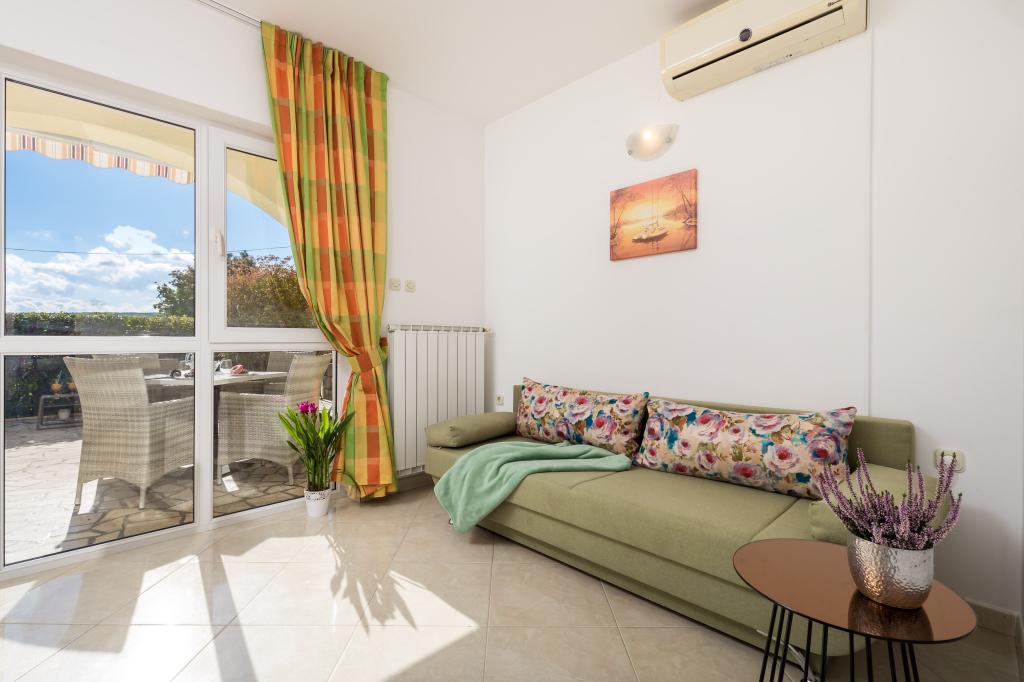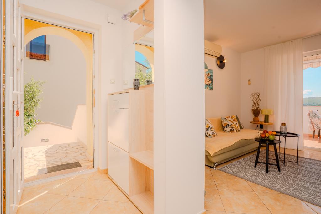 Čtyři moderně zařízené apartmány se nacházejí v klidné vesničce Čižići na ostrově Krk, ideální pro pohodovou rodinnou nebo romantickou dovolenou. Apartmány 1 a 2 se nacházejí v přízemí a nabízejí terasy s lehátky obklopené voňavou středomořskou zelení, zatímco apartmán 2 má navíc vyhřívanou vířivku a odpočinkový koutek v příjemném stínu olivovníků. Apartmány 3 a 4 v prvním patře mají balkon s výhledem na moře. Všechny apartmány mají klimatizaci, bezplatné Wi-Fi, SAT-TV, vybavenou kuchyň, koupelnu, ložní prádlo, ručníky a bezplatné parkování. Domácí mazlíčci jsou vítáni. Pláž je vzdálená 500 m.