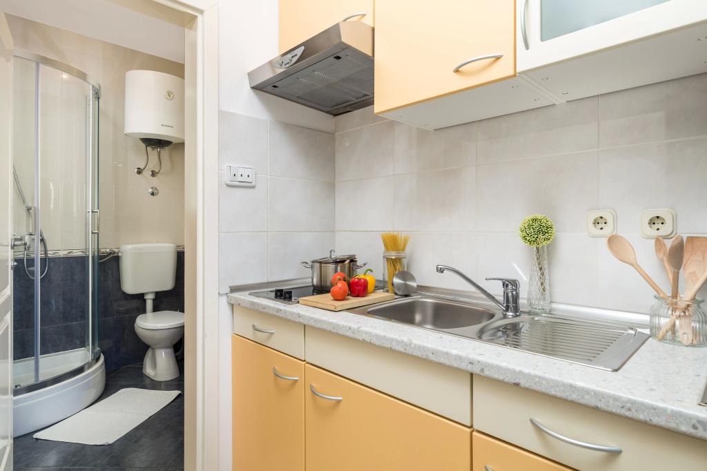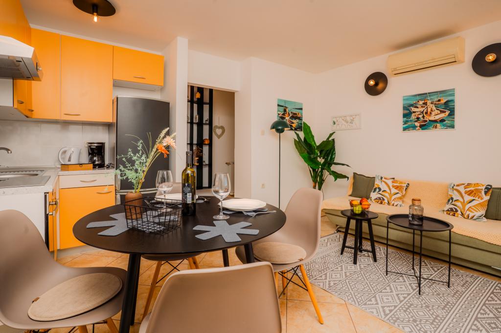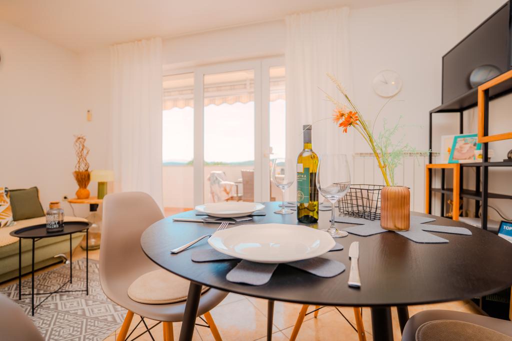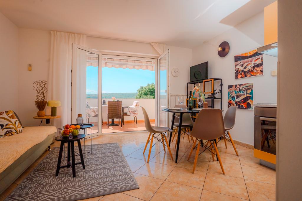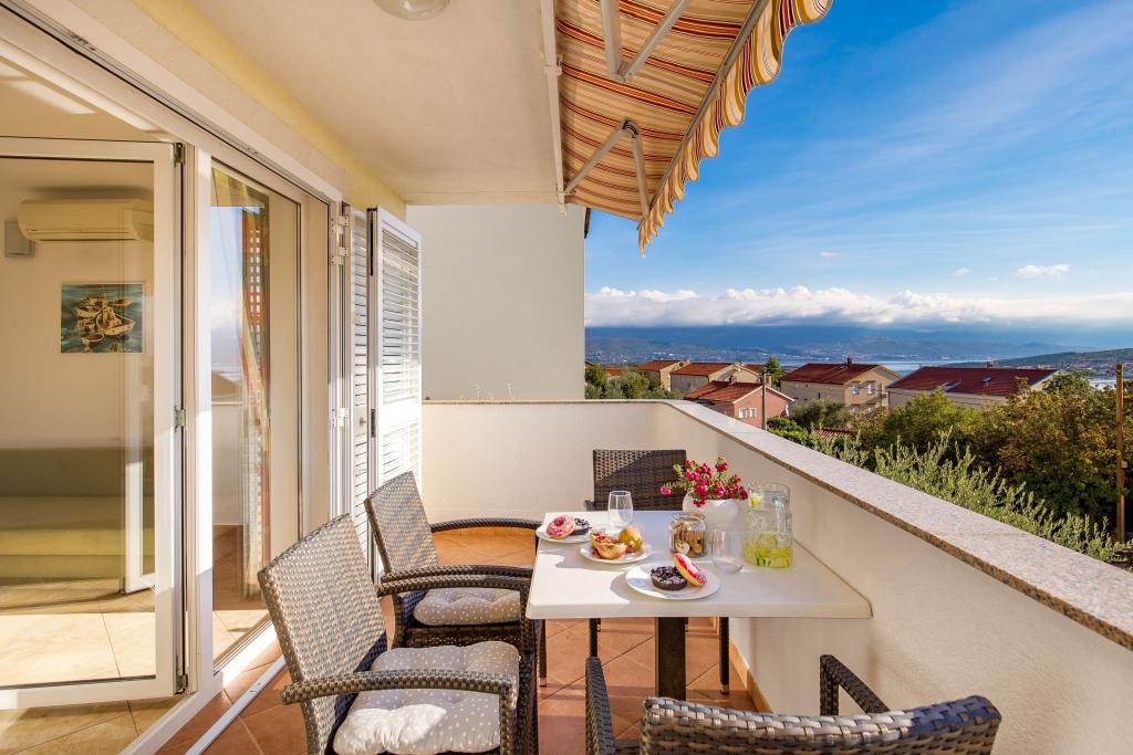 Čtyři moderně zařízené apartmány se nacházejí v klidné vesničce Čižići na ostrově Krk, ideální pro pohodovou rodinnou nebo romantickou dovolenou. Apartmány 1 a 2 se nacházejí v přízemí a nabízejí terasy s lehátky obklopené voňavou středomořskou zelení, zatímco apartmán 2 má navíc vyhřívanou vířivku a odpočinkový koutek v příjemném stínu olivovníků. Apartmány 3 a 4 v prvním patře mají balkon s výhledem na moře. Všechny apartmány mají klimatizaci, bezplatné Wi-Fi, SAT-TV, vybavenou kuchyň, koupelnu, ložní prádlo, ručníky a bezplatné parkování. Domácí mazlíčci jsou vítáni. Pláž je vzdálená 500 m.