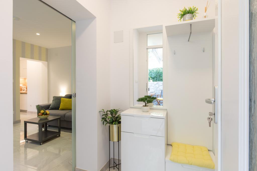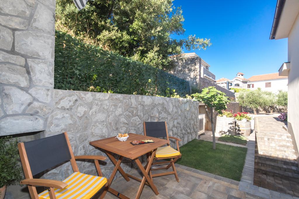 Apartmán NATALIJA se nachází v klidné části města Krka, plocha bytu je 35 m2 a odpovídající terasa 14 m2. Byt se nachází v přízemí rodinného domu, s velkou zahradou, obklopen olivovníky. Z bytu az terasy je krásný výhled na moře. Byt je téměř nový (v provozu 2 roční období) a je moderně zařízený, klimatizovaný, vybavený všemi potřebnými pro pohodlný pobyt, s bezplatným Wi-Fi a parkování zdarma pro auto na dvoře. Studio LUCIJA se nachází ve stejné budově. Plocha studia je 25 m2 a odpovídající terasa 1 m2. Studio se nachází v přízemí rodinného domu s velkou zahradou obklopenou olivovníky. Kapacita je 2 osoby na pohodlném rozkládacím gauči. Studio má výhled do zahrady. Bez výhledu na moře. Studio je nové (používá se od roku 2019) a je moderně zařízené, klimatizované, vybavené veškerým nezbytným vybavením pro pohodlný pobyt, s bezplatným Wi-Fi a parkovacím místem pro auto na dvoře.