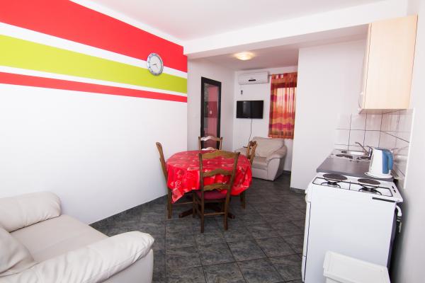 Plně vybavené a moderní apartmány v klidné části města Krk. V areálu se nachází 5 minut chůze od centra města, pláže, tenisové kurty.
