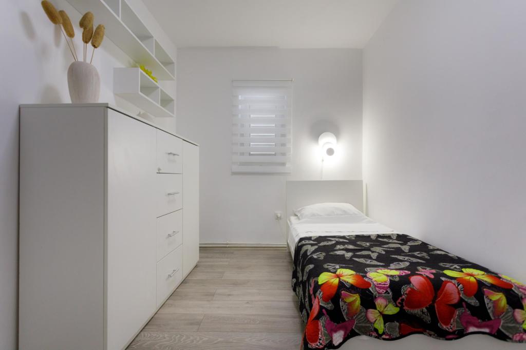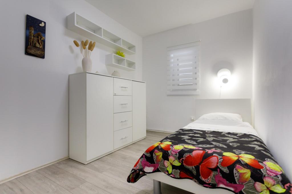 Plně vybavené apartmány v klidné části města Krk, jen 3 minuty chůze do centra a 7 minut chůze na pláž.